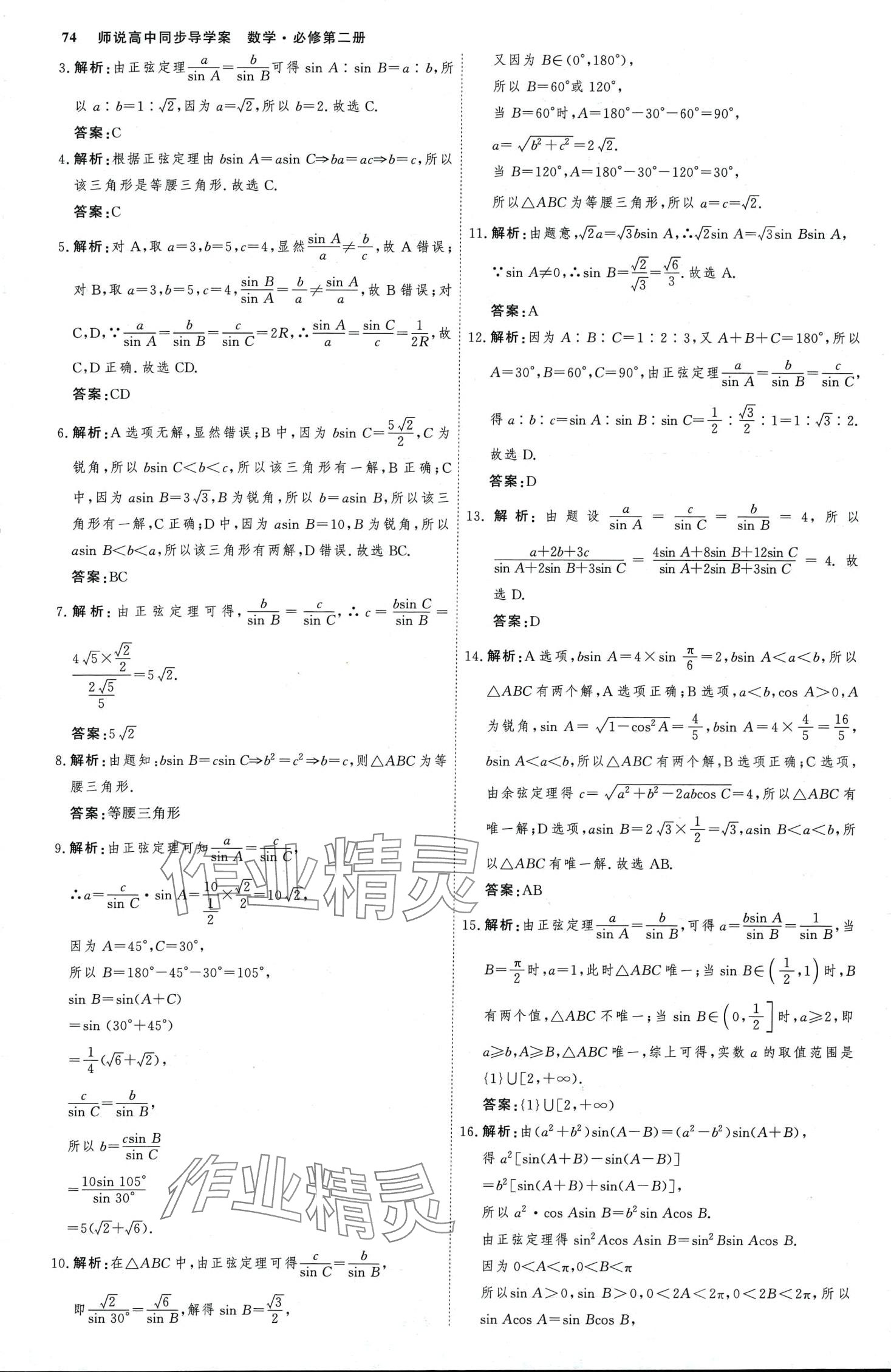 注:目前有些书本章节名称可能整理的还不是很完善,但都是按照顺序排列的,请同学们按照顺序仔细查找。练习册 2024年师说高中数学必修第二册人教版 答案主要是用来给同学们做完题方便对答案用的,请勿直接抄袭。