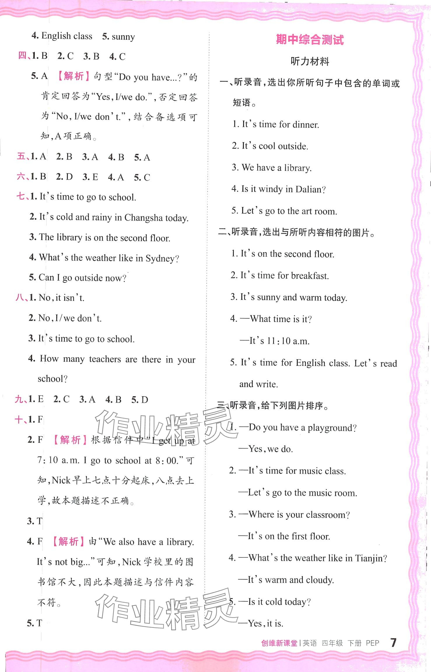 注:目前有些书本章节名称可能整理的还不是很完善,但都是按照顺序排列的,请同学们按照顺序仔细查找。练习册 2024年创维新课堂四年级英语下册人教版 答案主要是用来给同学们做完题方便对答案用的,请勿直接抄袭。