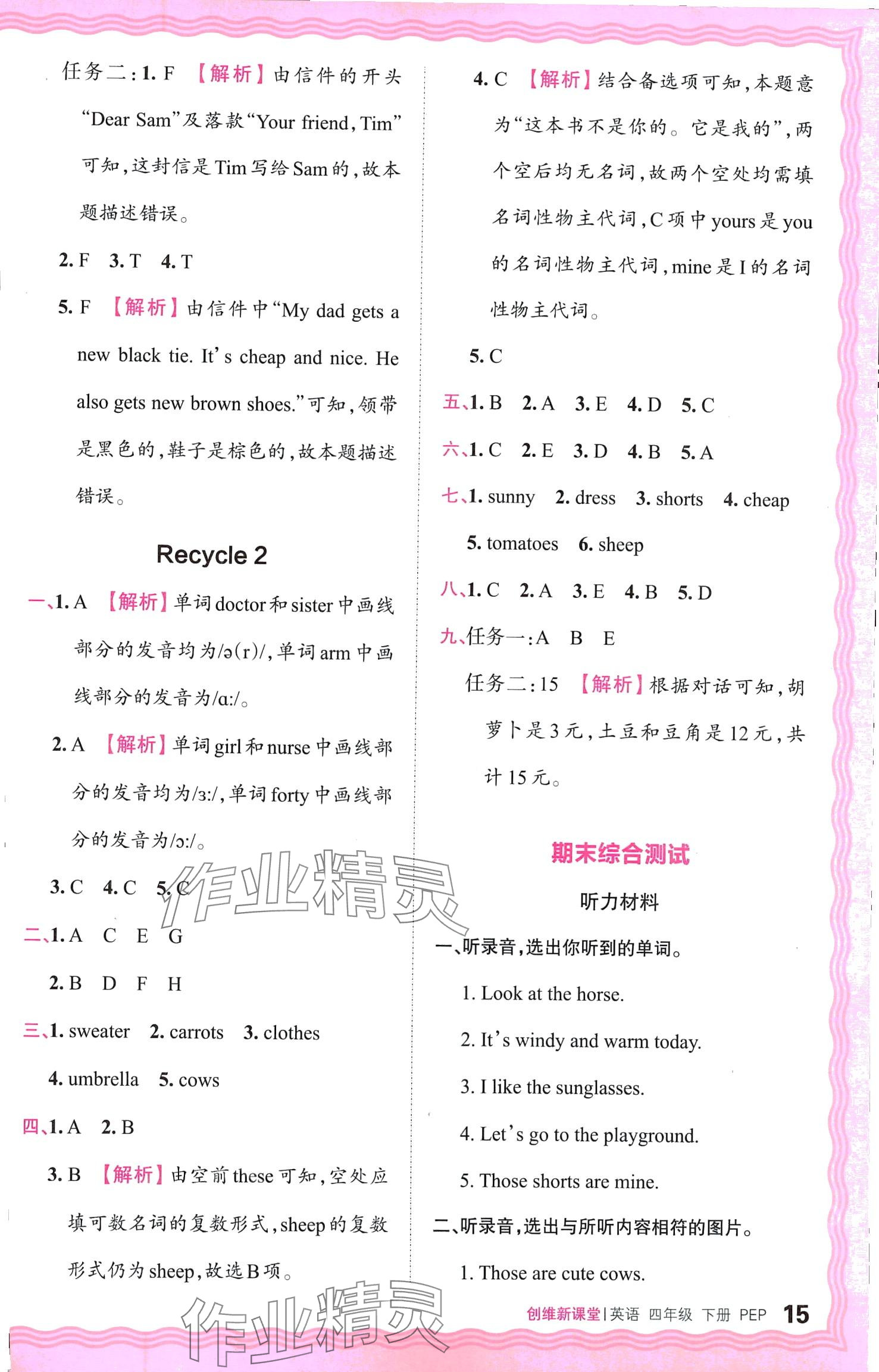 注:目前有些书本章节名称可能整理的还不是很完善,但都是按照顺序排列的,请同学们按照顺序仔细查找。练习册 2024年创维新课堂四年级英语下册人教版 答案主要是用来给同学们做完题方便对答案用的,请勿直接抄袭。