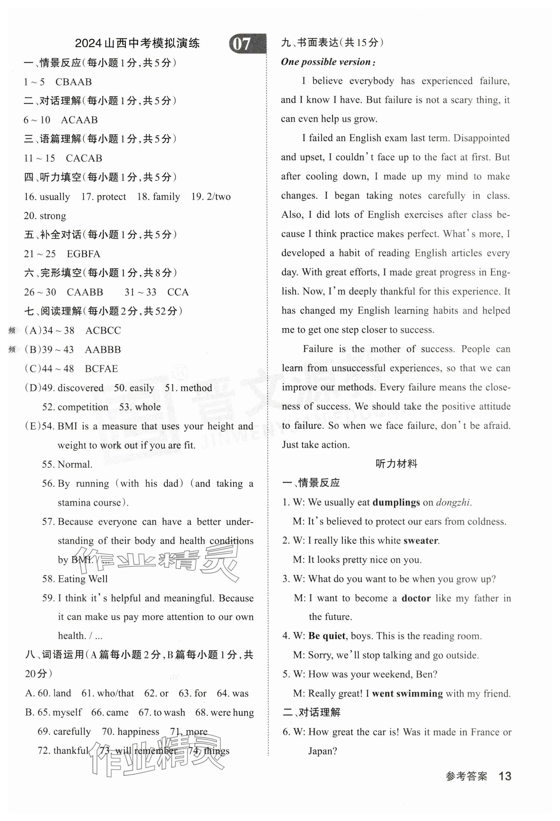 注:目前有些书本章节名称可能整理的还不是很完善,但都是按照顺序排列的,请同学们按照顺序仔细查找。练习册 2024年晋文源中考模拟演练英语山西专版 答案主要是用来给同学们做完题方便对答案用的,请勿直接抄袭。