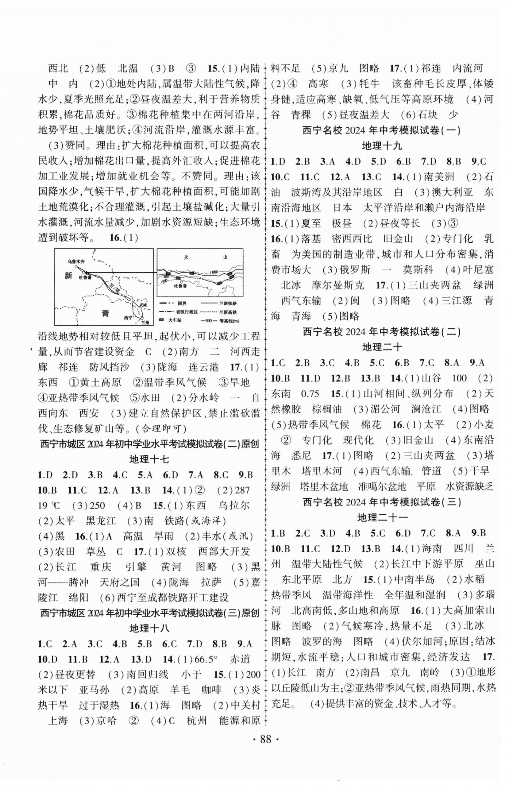 注:目前有些书本章节名称可能整理的还不是很完善,但都是按照顺序排列的,请同学们按照顺序仔细查找。练习册 2024年青海中考金榜名卷初中学业水平测试卷地理 答案主要是用来给同学们做完题方便对答案用的,请勿直接抄袭。