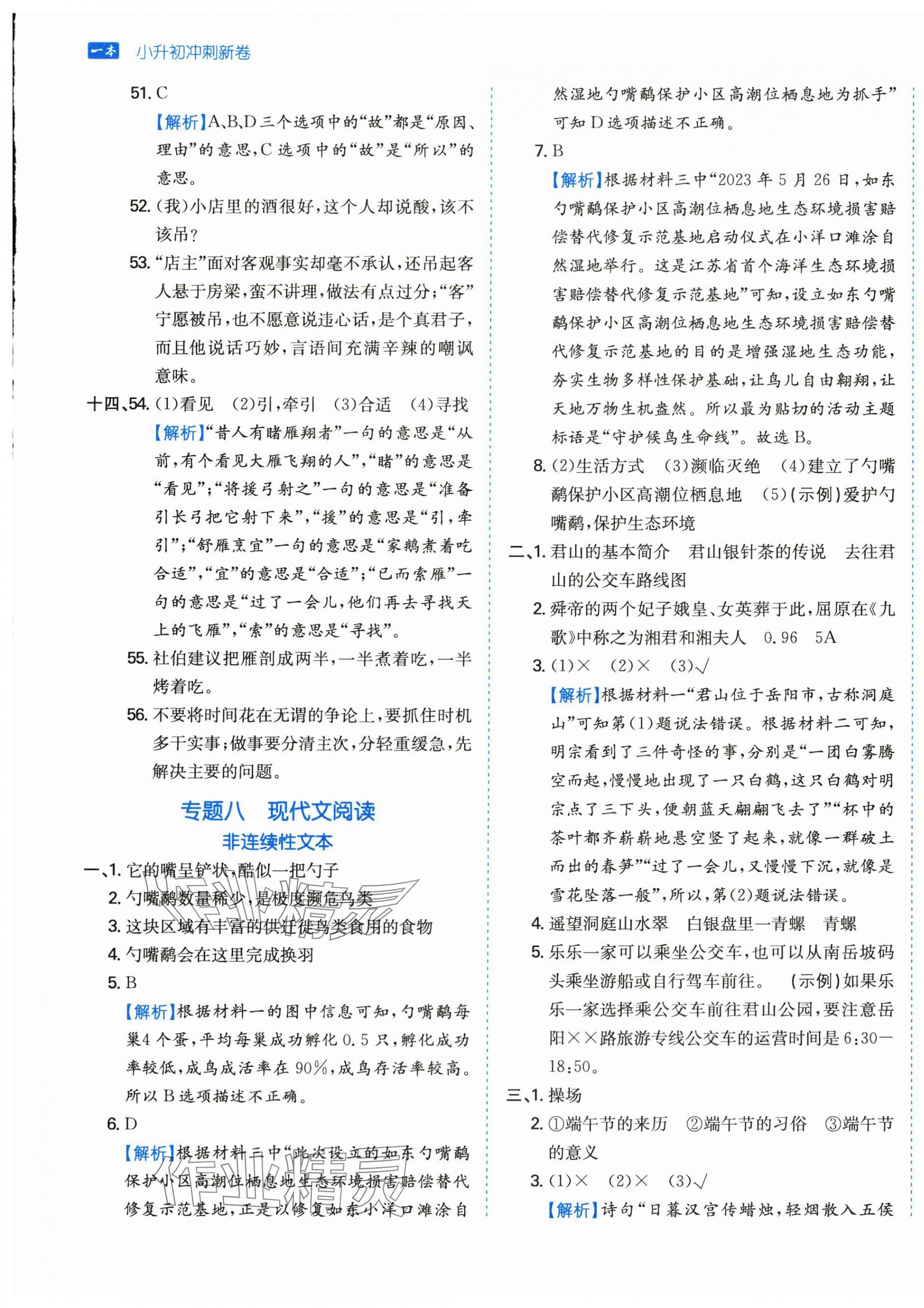 注:目前有些书本章节名称可能整理的还不是很完善,但都是按照顺序排列的,请同学们按照顺序仔细查找。练习册 2024年一本小升初冲刺新卷六年级语文人教版 答案主要是用来给同学们做完题方便对答案用的,请勿直接抄袭。
