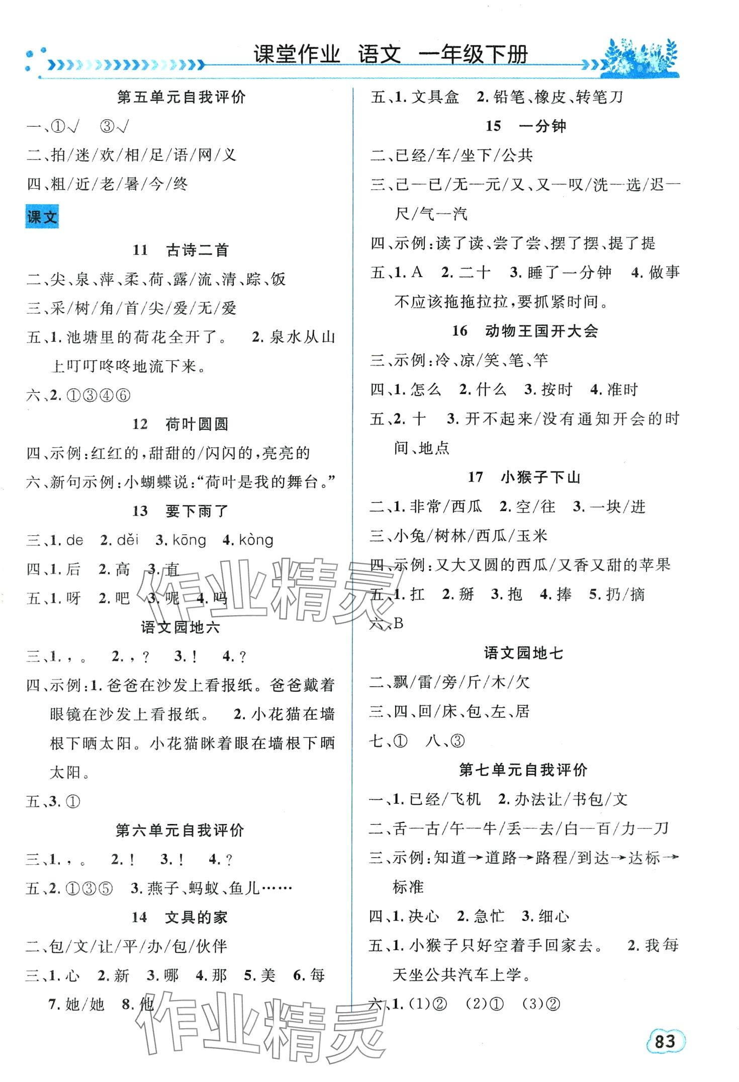注:目前有些书本章节名称可能整理的还不是很完善,但都是按照顺序排列的,请同学们按照顺序仔细查找。练习册 2024年课堂作业崇文书局一年级语文下册人教版 答案主要是用来给同学们做完题方便对答案用的,请勿直接抄袭。