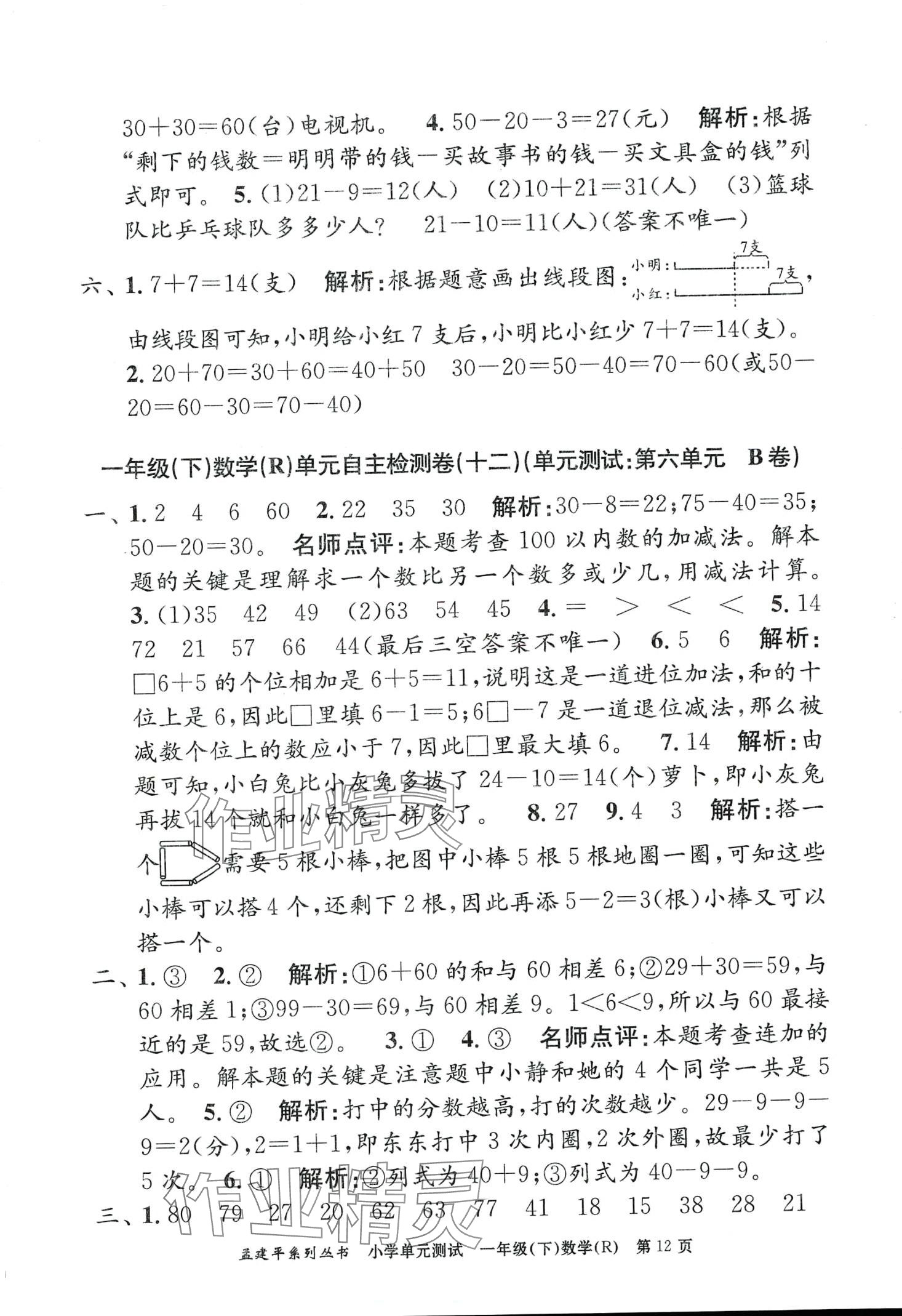 注:目前有些书本章节名称可能整理的还不是很完善,但都是按照顺序排列的,请同学们按照顺序仔细查找。练习册 2024年孟建平单元测试一年级数学下册人教版 答案主要是用来给同学们做完题方便对答案用的,请勿直接抄袭。