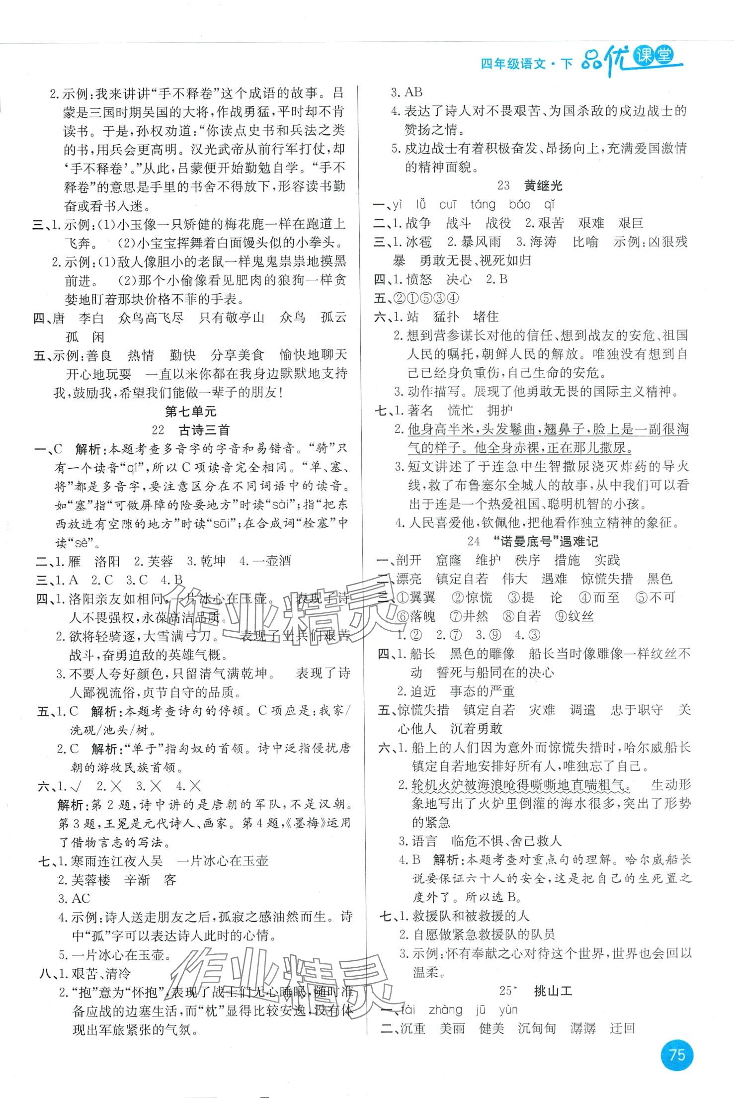 注:目前有些书本章节名称可能整理的还不是很完善,但都是按照顺序排列的,请同学们按照顺序仔细查找。练习册 2024年品优课堂四年级语文下册人教版 答案主要是用来给同学们做完题方便对答案用的,请勿直接抄袭。