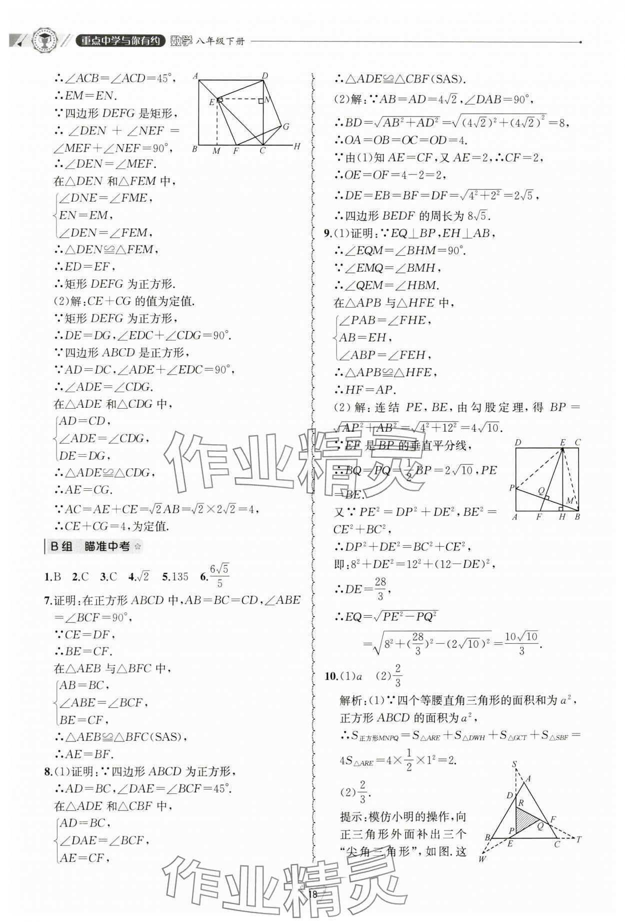 注:目前有些书本章节名称可能整理的还不是很完善,但都是按照顺序排列的,请同学们按照顺序仔细查找。练习册 2024年重点中学与你有约八年级数学下册浙教版 答案主要是用来给同学们做完题方便对答案用的,请勿直接抄袭。