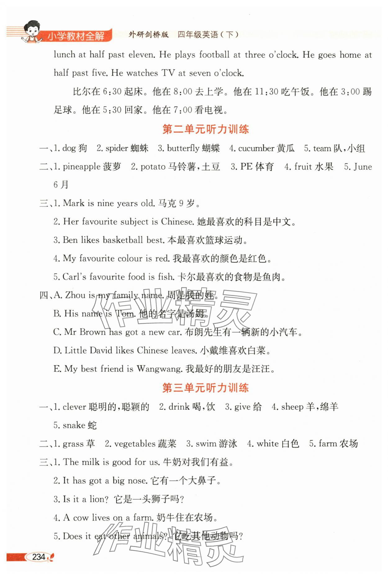 注:目前有些书本章节名称可能整理的还不是很完善,但都是按照顺序排列的,请同学们按照顺序仔细查找。练习册 2024年教材课本四年级英语下册剑桥版 答案主要是用来给同学们做完题方便对答案用的,请勿直接抄袭。