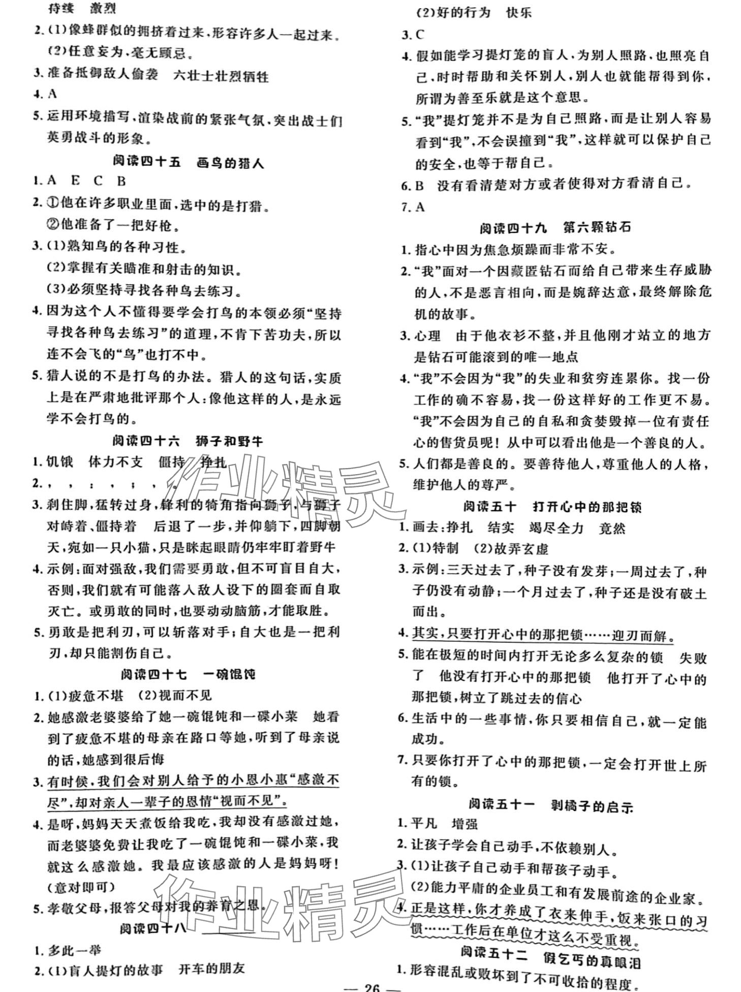 注:目前有些书本章节名称可能整理的还不是很完善,但都是按照顺序排列的,请同学们按照顺序仔细查找。练习册 2024年小学生阅读真题80篇六年级 答案主要是用来给同学们做完题方便对答案用的,请勿直接抄袭。