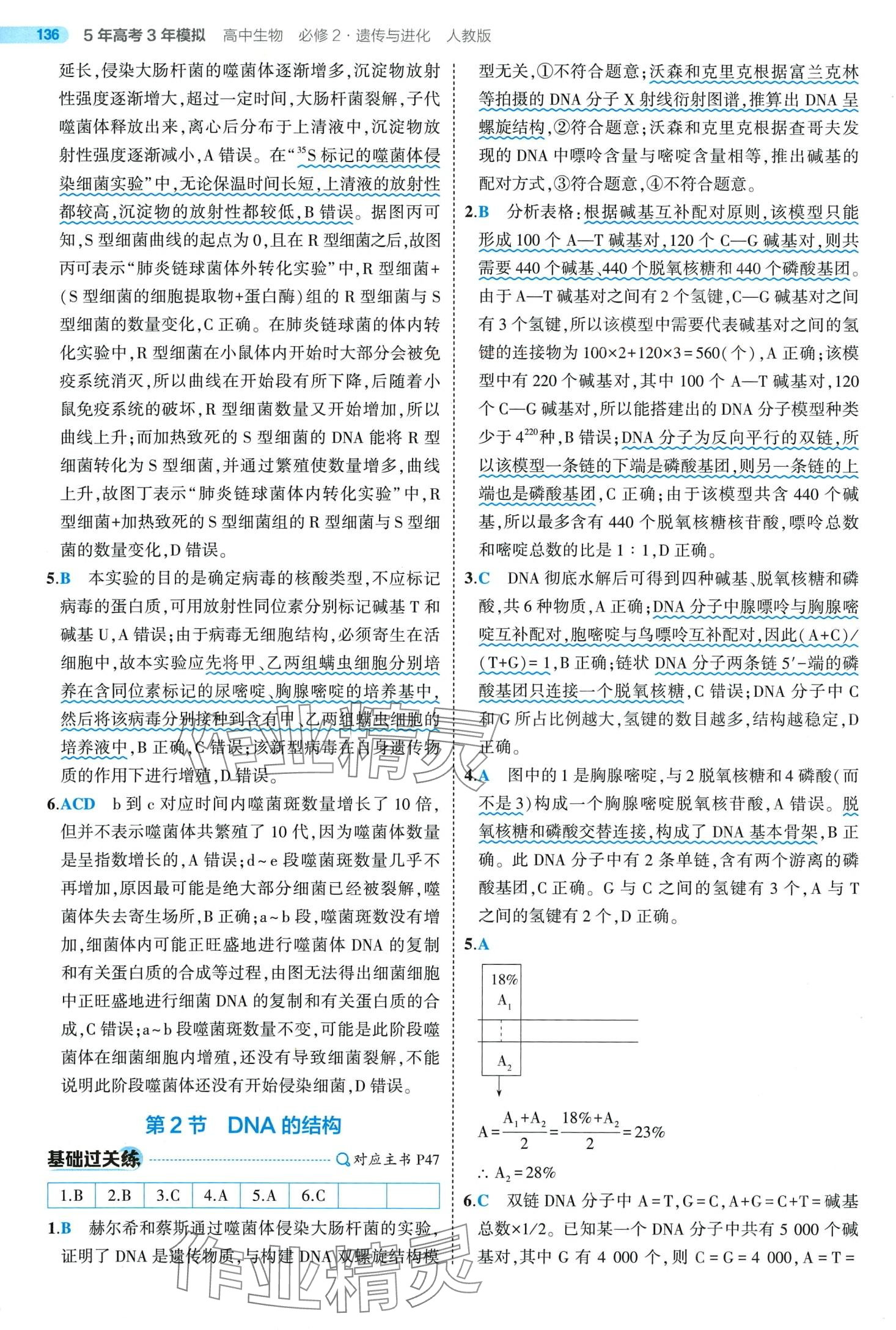 注:目前有些书本章节名称可能整理的还不是很完善,但都是按照顺序排列的,请同学们按照顺序仔细查找。练习册 2024年5年高考3年模拟高中生物必修2人教版 答案主要是用来给同学们做完题方便对答案用的,请勿直接抄袭。