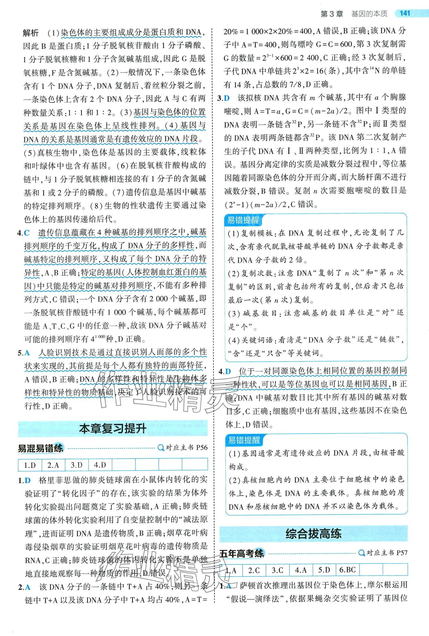 注:目前有些书本章节名称可能整理的还不是很完善,但都是按照顺序排列的,请同学们按照顺序仔细查找。练习册 2024年5年高考3年模拟高中生物必修2人教版 答案主要是用来给同学们做完题方便对答案用的,请勿直接抄袭。