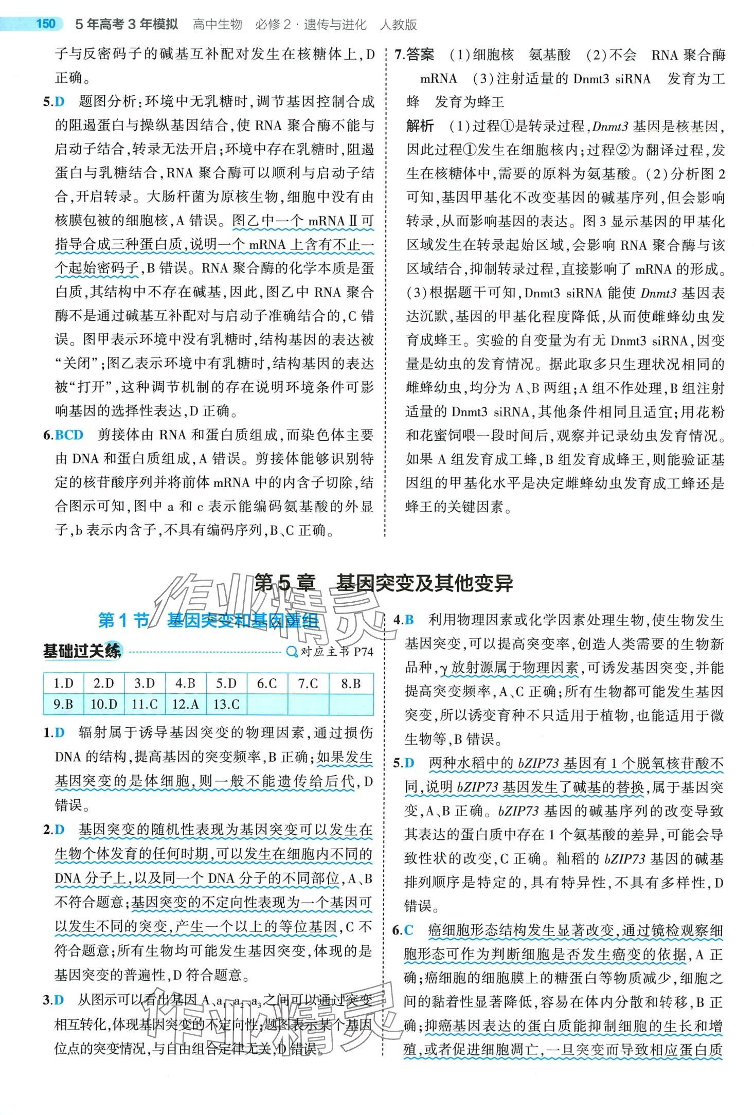 注:目前有些书本章节名称可能整理的还不是很完善,但都是按照顺序排列的,请同学们按照顺序仔细查找。练习册 2024年5年高考3年模拟高中生物必修2人教版 答案主要是用来给同学们做完题方便对答案用的,请勿直接抄袭。