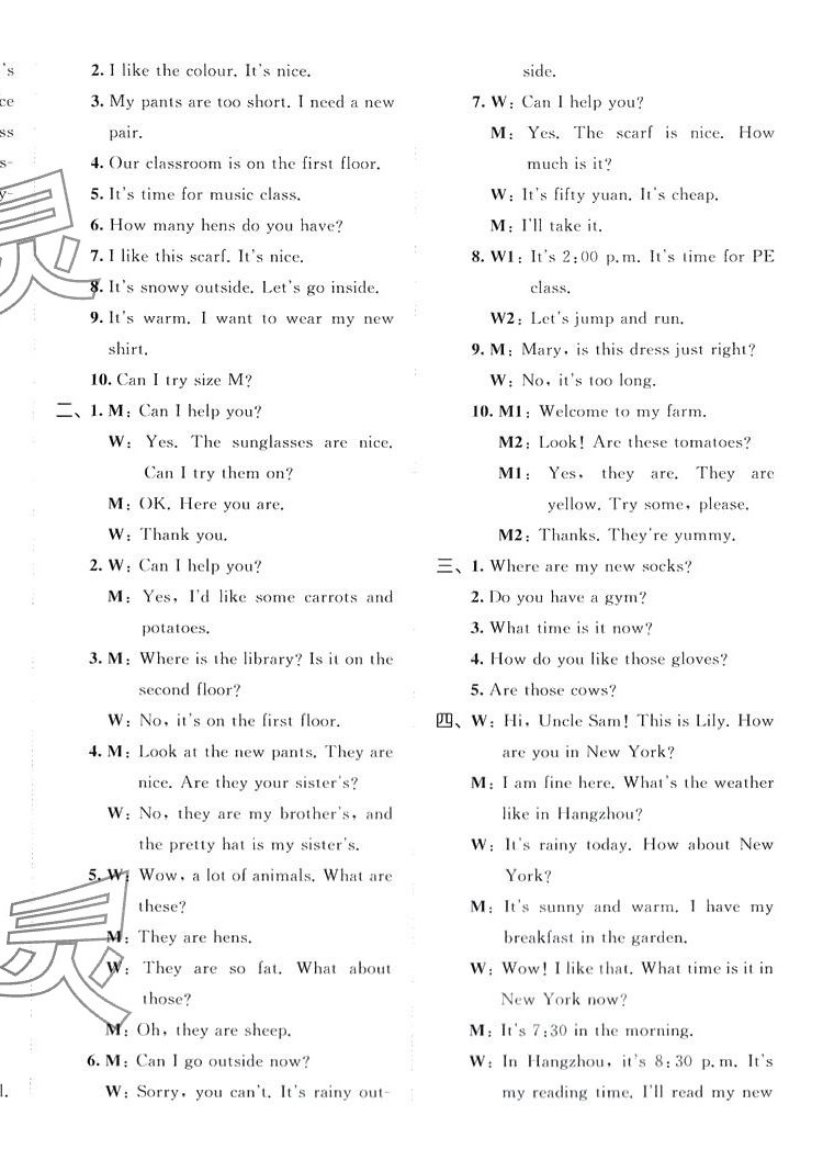 注:目前有些书本章节名称可能整理的还不是很完善,但都是按照顺序排列的,请同学们按照顺序仔细查找。练习册 2024年53全优卷四年级英语下册人教版 答案主要是用来给同学们做完题方便对答案用的,请勿直接抄袭。
