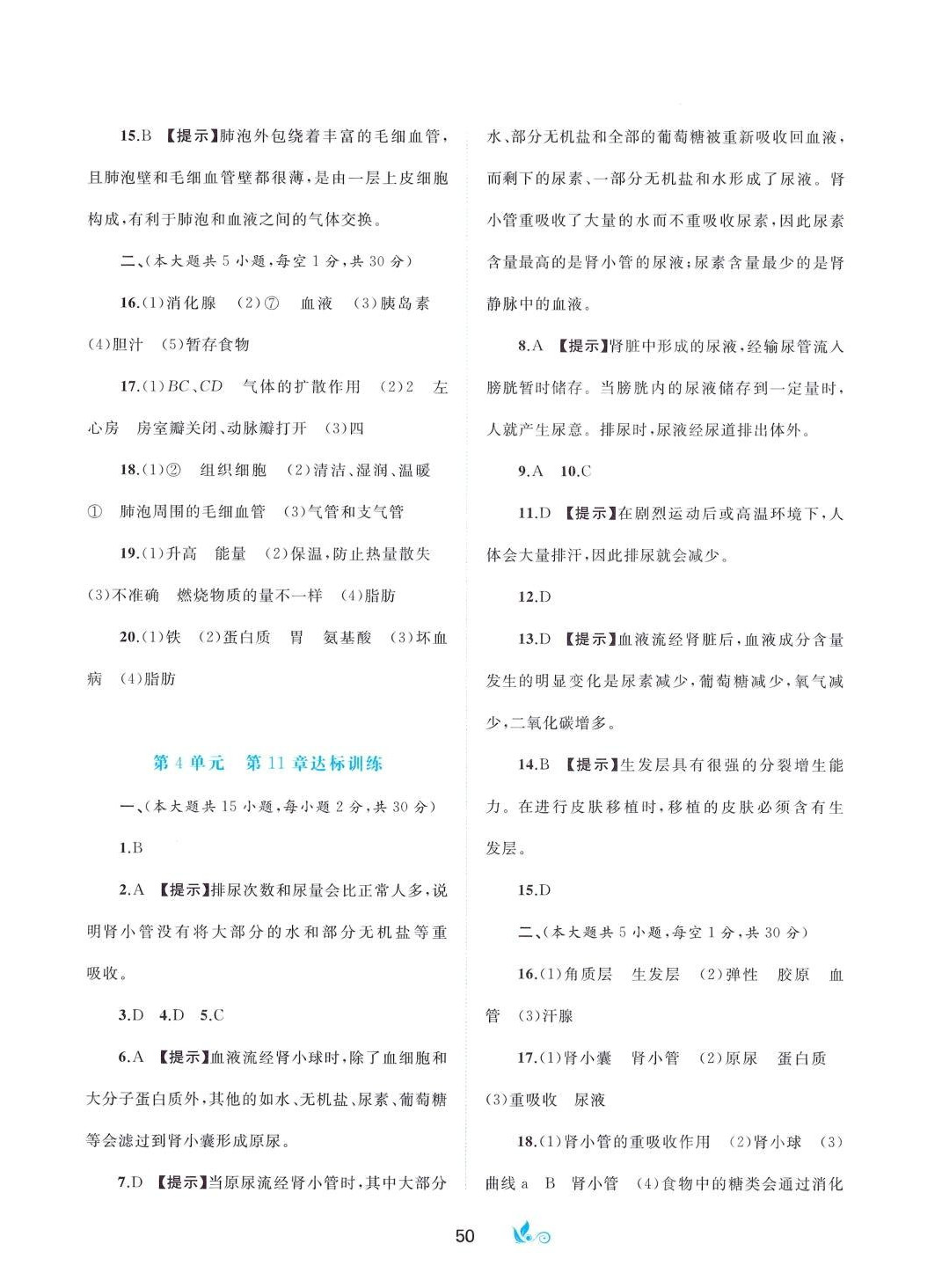 注:目前有些书本章节名称可能整理的还不是很完善,但都是按照顺序排列的,请同学们按照顺序仔细查找。练习册 2024年新课程学习与测评单元双测七年级生物下册北师大版B版 答案主要是用来给同学们做完题方便对答案用的,请勿直接抄袭。