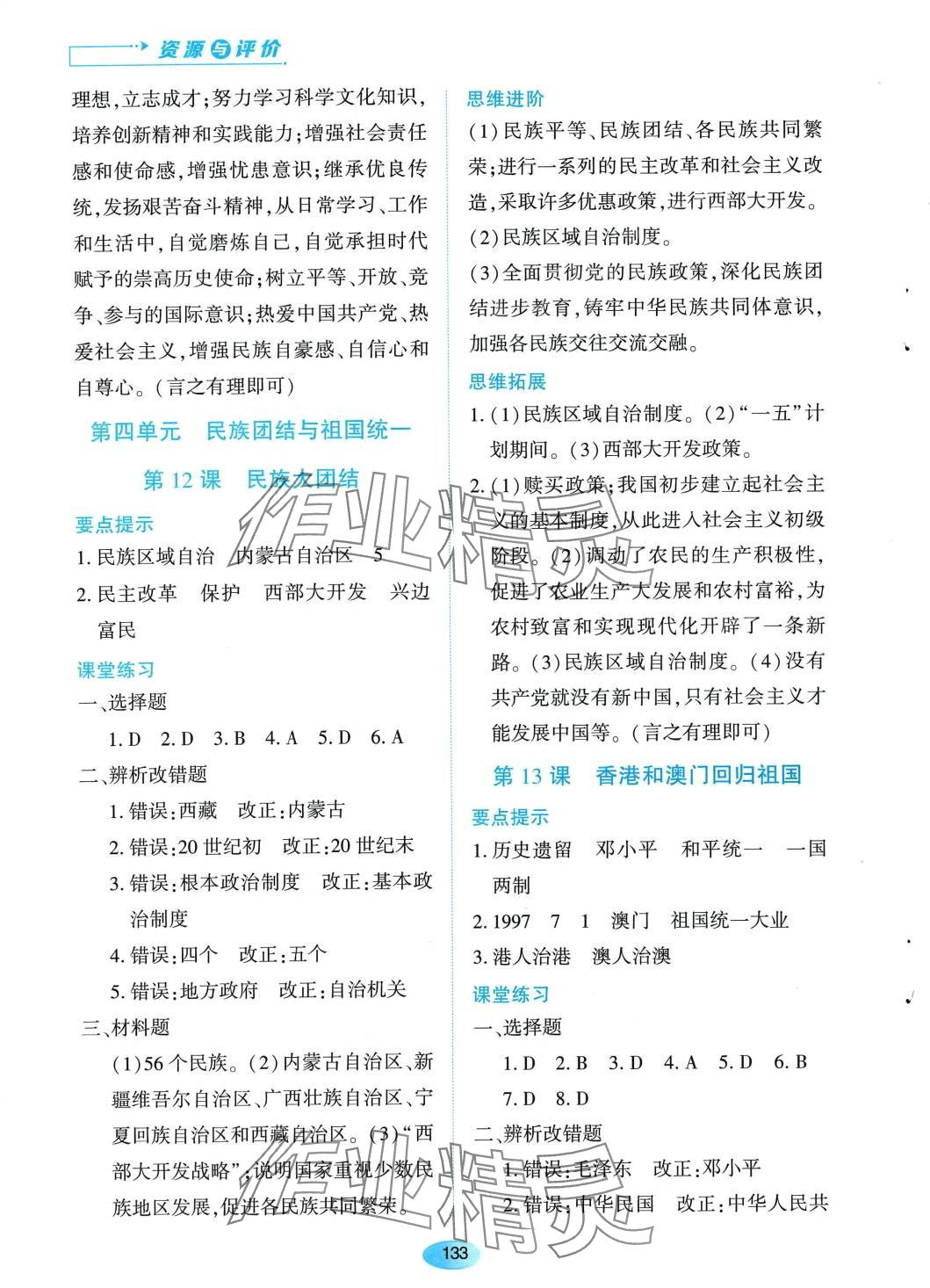 2024年资源与评价黑龙江教育出版社八年级历史下册人教版
