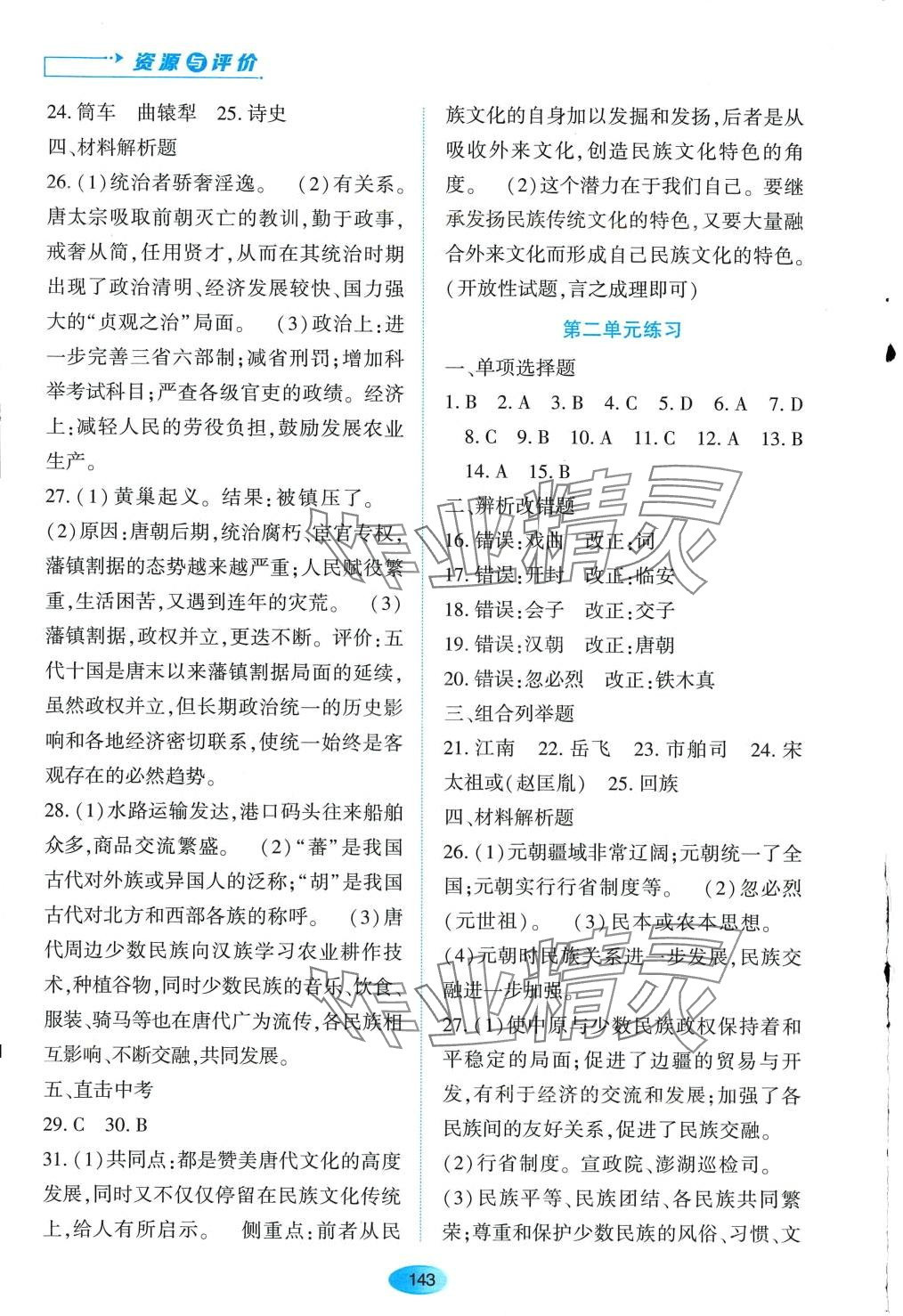 注:目前有些书本章节名称可能整理的还不是很完善,但都是按照顺序排列的,请同学们按照顺序仔细查找。练习册 2024年资源与评价黑龙江教育出版社七年级历史下册人教版 答案主要是用来给同学们做完题方便对答案用的,请勿直接抄袭。