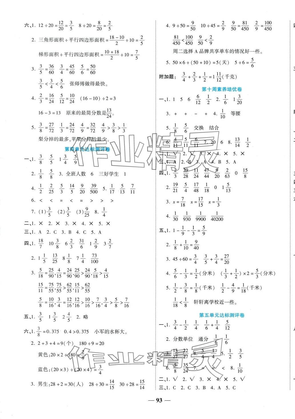 注:目前有些书本章节名称可能整理的还不是很完善,但都是按照顺序排列的,请同学们按照顺序仔细查找。练习册 2024年金优教辅全能练考卷五年级数学下册苏教版 答案主要是用来给同学们做完题方便对答案用的,请勿直接抄袭。