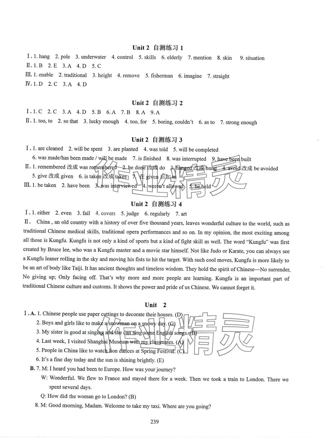 注:目前有些书本章节名称可能整理的还不是很完善,但都是按照顺序排列的,请同学们按照顺序仔细查找。练习册 2024年N版英语综合技能测试九年级全一册沪教版五四制 答案主要是用来给同学们做完题方便对答案用的,请勿直接抄袭。