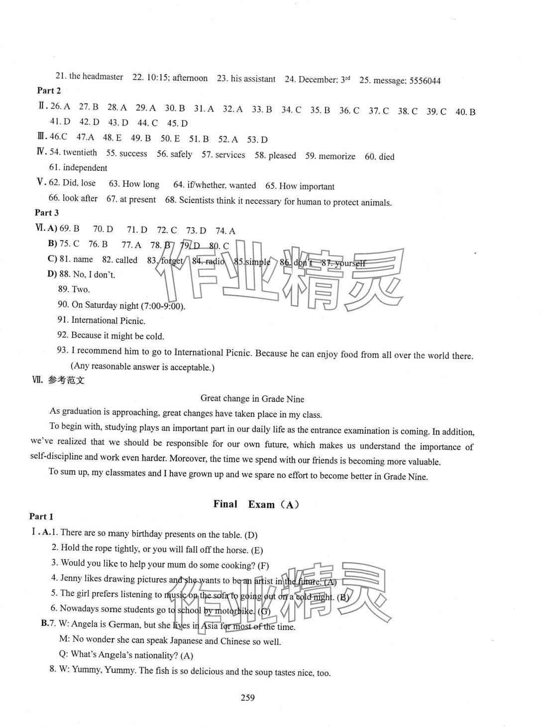 注:目前有些书本章节名称可能整理的还不是很完善,但都是按照顺序排列的,请同学们按照顺序仔细查找。练习册 2024年N版英语综合技能测试九年级全一册沪教版五四制 答案主要是用来给同学们做完题方便对答案用的,请勿直接抄袭。
