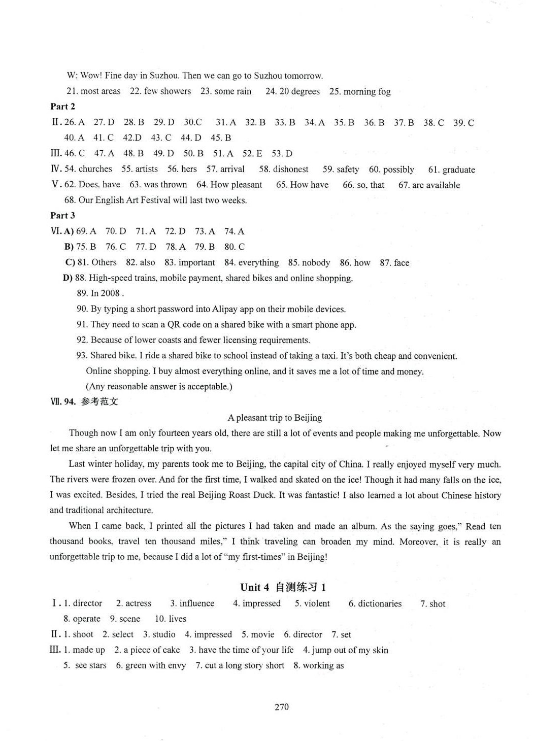 注:目前有些书本章节名称可能整理的还不是很完善,但都是按照顺序排列的,请同学们按照顺序仔细查找。练习册 2024年N版英语综合技能测试九年级全一册沪教版五四制 答案主要是用来给同学们做完题方便对答案用的,请勿直接抄袭。