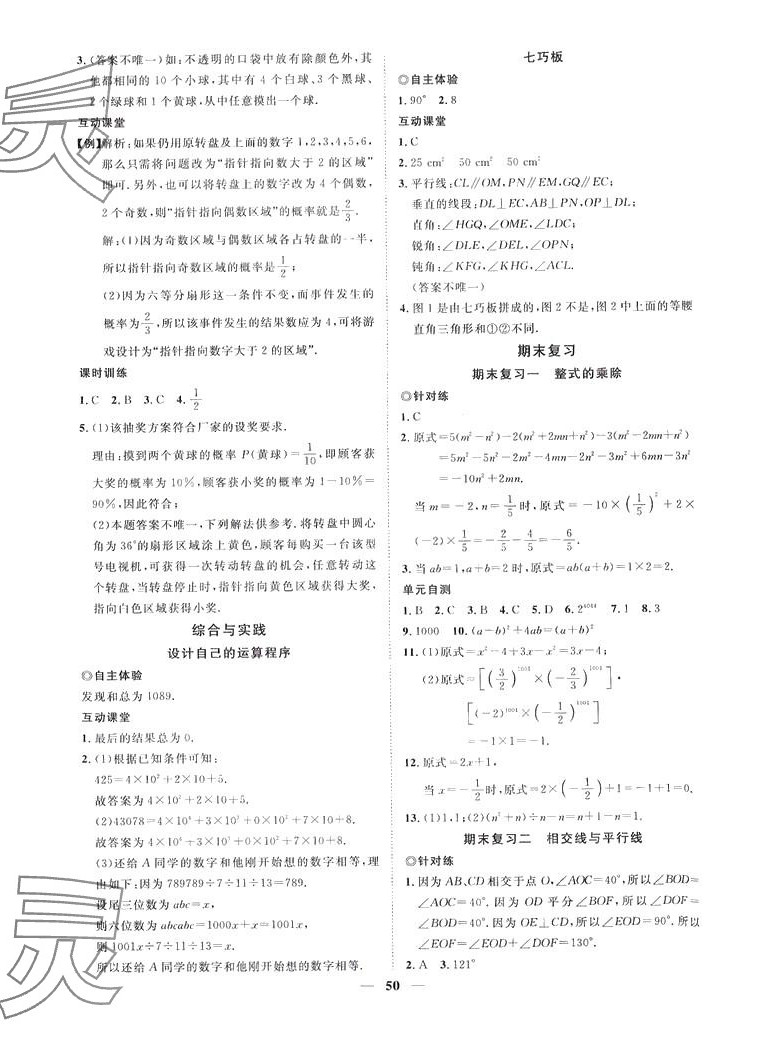 注:目前有些书本章节名称可能整理的还不是很完善,但都是按照顺序排列的,请同学们按照顺序仔细查找。练习册 2024年新课程成长资源七年级数学下册北师大版 答案主要是用来给同学们做完题方便对答案用的,请勿直接抄袭。