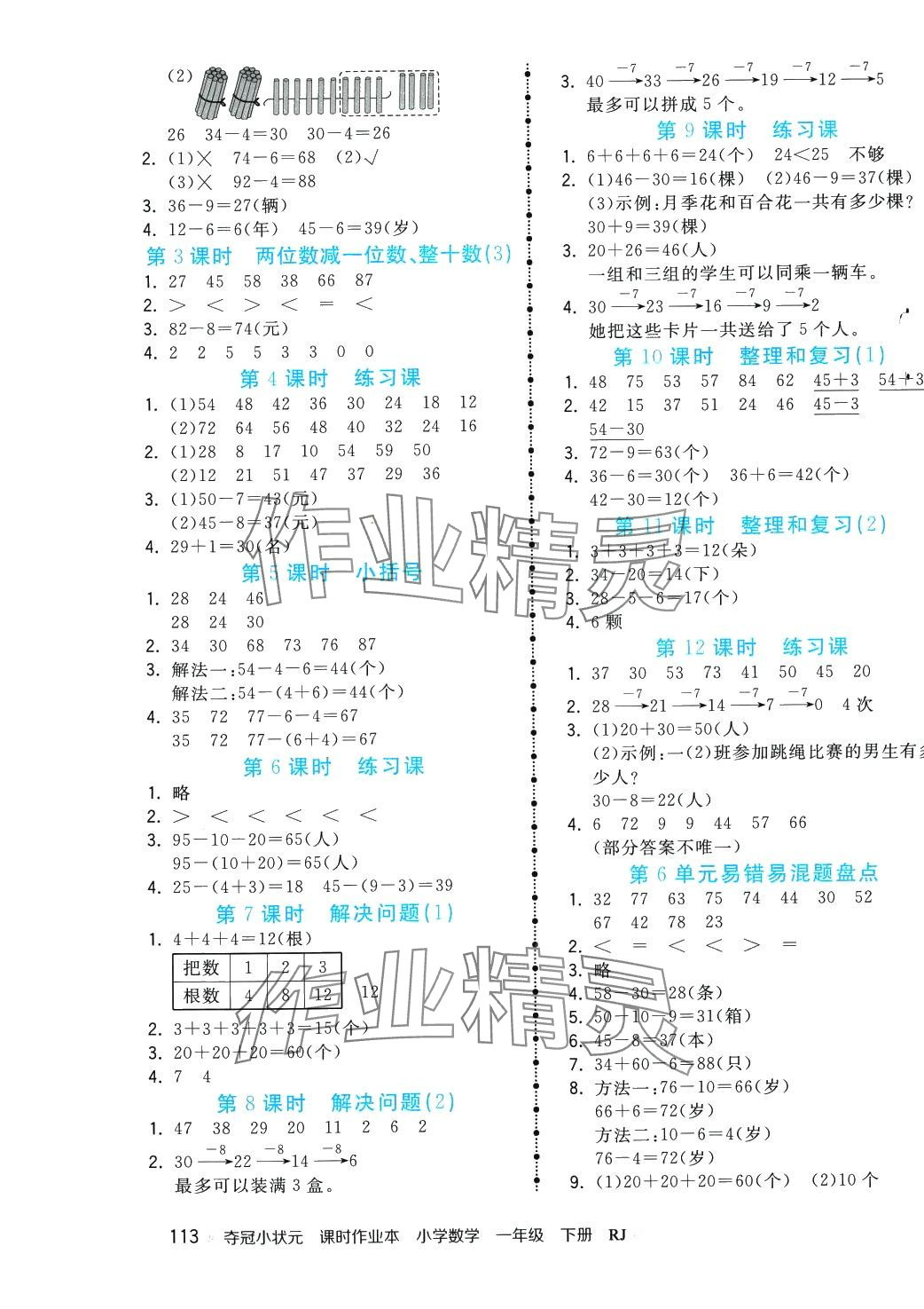 注:目前有些书本章节名称可能整理的还不是很完善,但都是按照顺序排列的,请同学们按照顺序仔细查找。练习册 2024年夺冠小状元课时作业本一年级数学下册人教版 答案主要是用来给同学们做完题方便对答案用的,请勿直接抄袭。