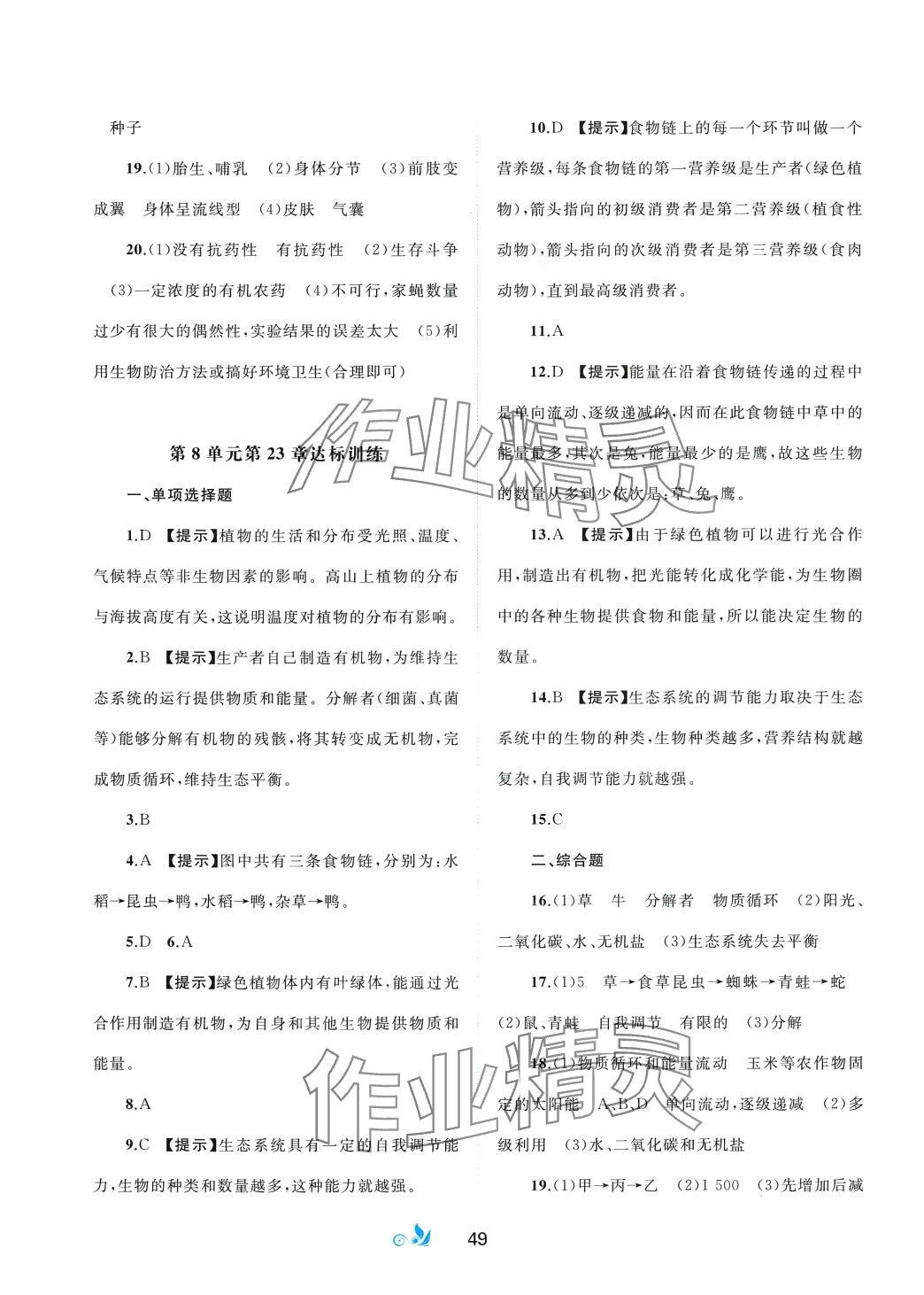 注:目前有些书本章节名称可能整理的还不是很完善,但都是按照顺序排列的,请同学们按照顺序仔细查找。练习册 2024年新课程学习与测评单元双测八年级生物下册北师大版B版 答案主要是用来给同学们做完题方便对答案用的,请勿直接抄袭。