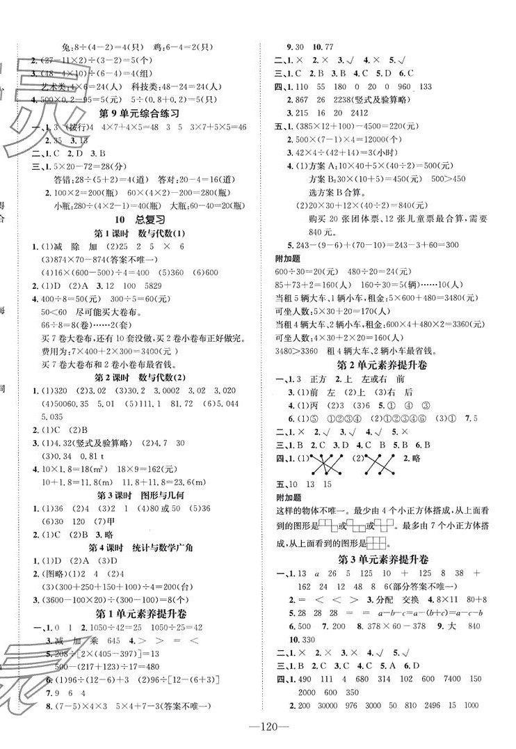 注:目前有些书本章节名称可能整理的还不是很完善,但都是按照顺序排列的,请同学们按照顺序仔细查找。练习册 2024年小学一课三练我的作业本四年级数学下册人教版 答案主要是用来给同学们做完题方便对答案用的,请勿直接抄袭。