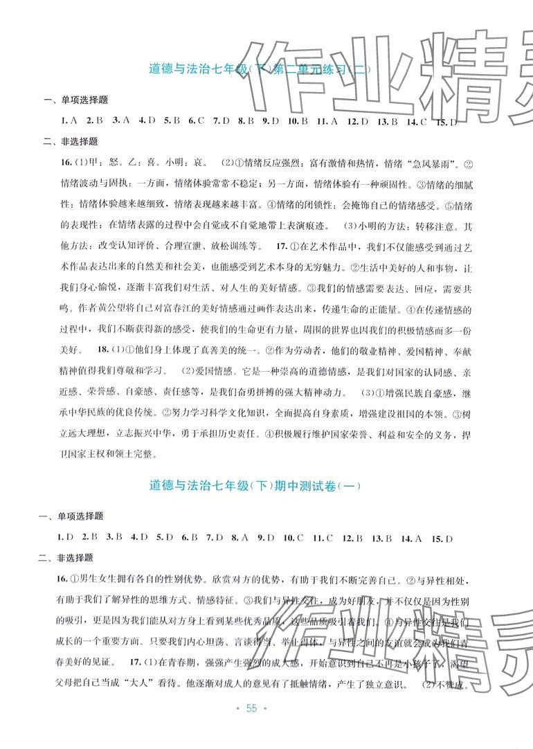 注:目前有些书本章节名称可能整理的还不是很完善,但都是按照顺序排列的,请同学们按照顺序仔细查找。练习册 2024年全程检测单元测试卷七年级道德与法治下册人教版A 答案主要是用来给同学们做完题方便对答案用的,请勿直接抄袭。
