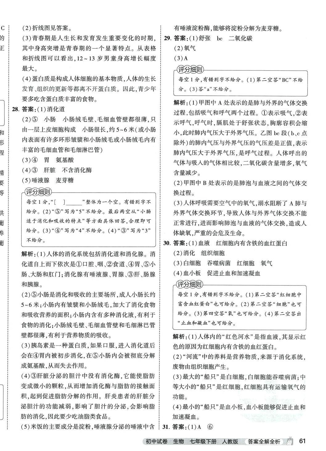注:目前有些书本章节名称可能整理的还不是很完善,但都是按照顺序排列的,请同学们按照顺序仔细查找。练习册 2024年5年中考3年模拟初中试卷七年级生物下册人教版 答案主要是用来给同学们做完题方便对答案用的,请勿直接抄袭。