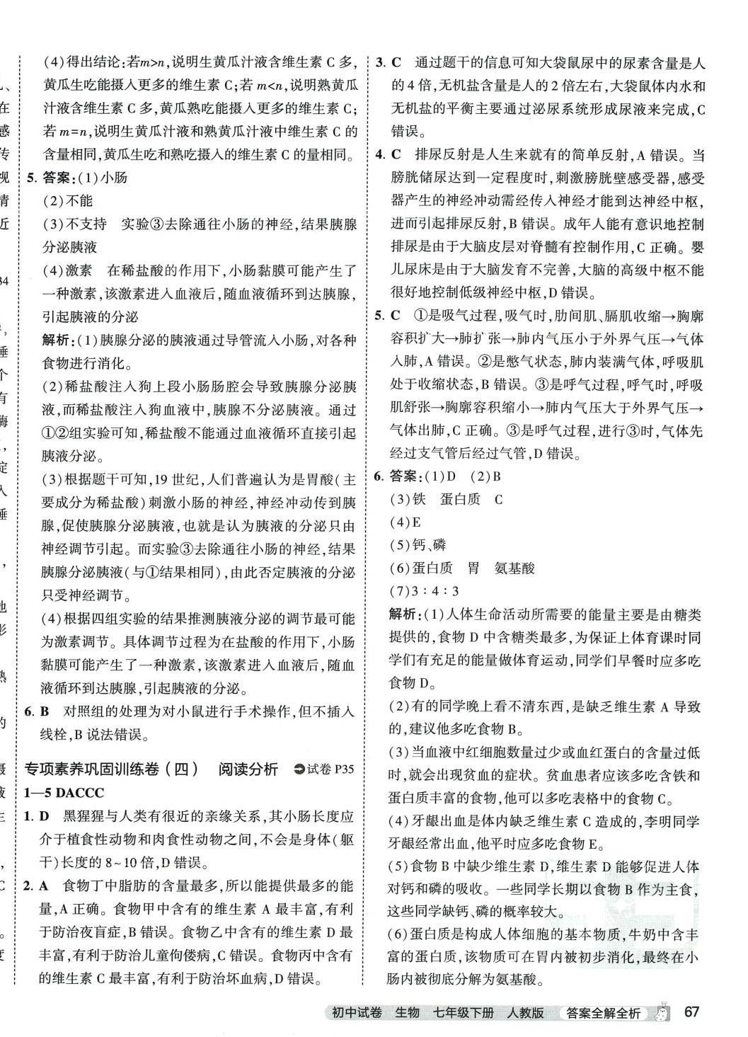 注:目前有些书本章节名称可能整理的还不是很完善,但都是按照顺序排列的,请同学们按照顺序仔细查找。练习册 2024年5年中考3年模拟初中试卷七年级生物下册人教版 答案主要是用来给同学们做完题方便对答案用的,请勿直接抄袭。