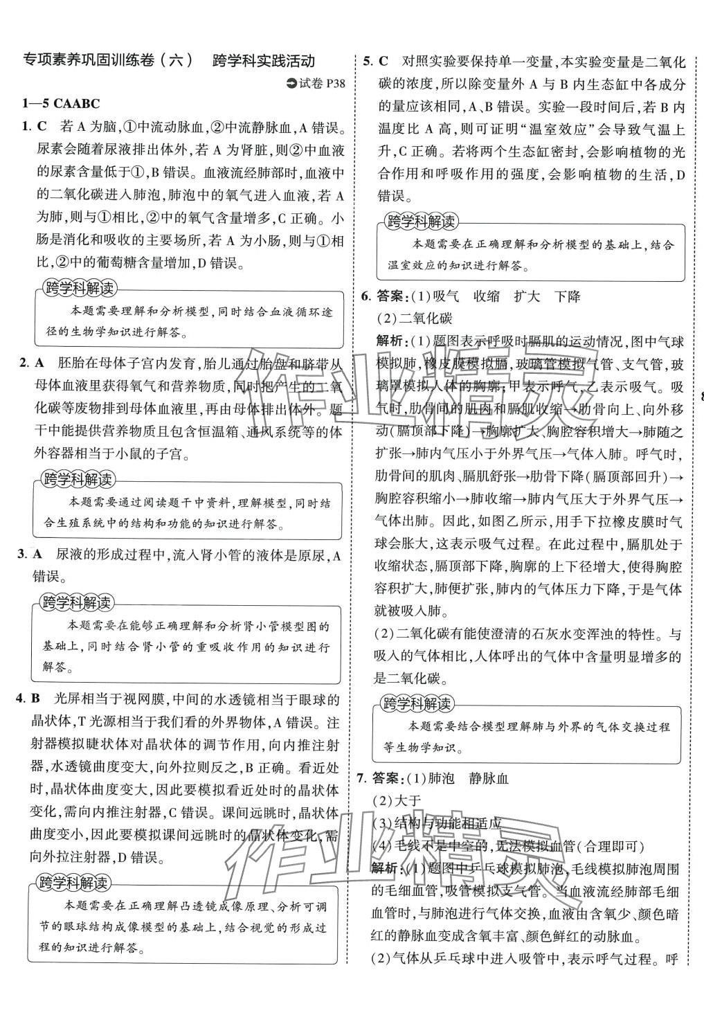 注:目前有些书本章节名称可能整理的还不是很完善,但都是按照顺序排列的,请同学们按照顺序仔细查找。练习册 2024年5年中考3年模拟初中试卷七年级生物下册人教版 答案主要是用来给同学们做完题方便对答案用的,请勿直接抄袭。