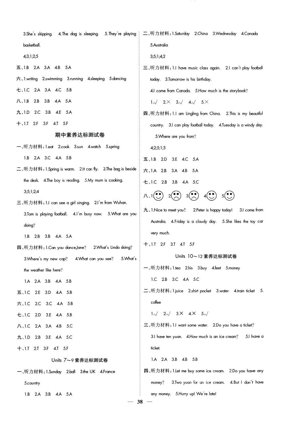 注:目前有些书本章节名称可能整理的还不是很完善,但都是按照顺序排列的,请同学们按照顺序仔细查找。练习册 2024年智慧花朵四年级英语下册湘少版 答案主要是用来给同学们做完题方便对答案用的,请勿直接抄袭。