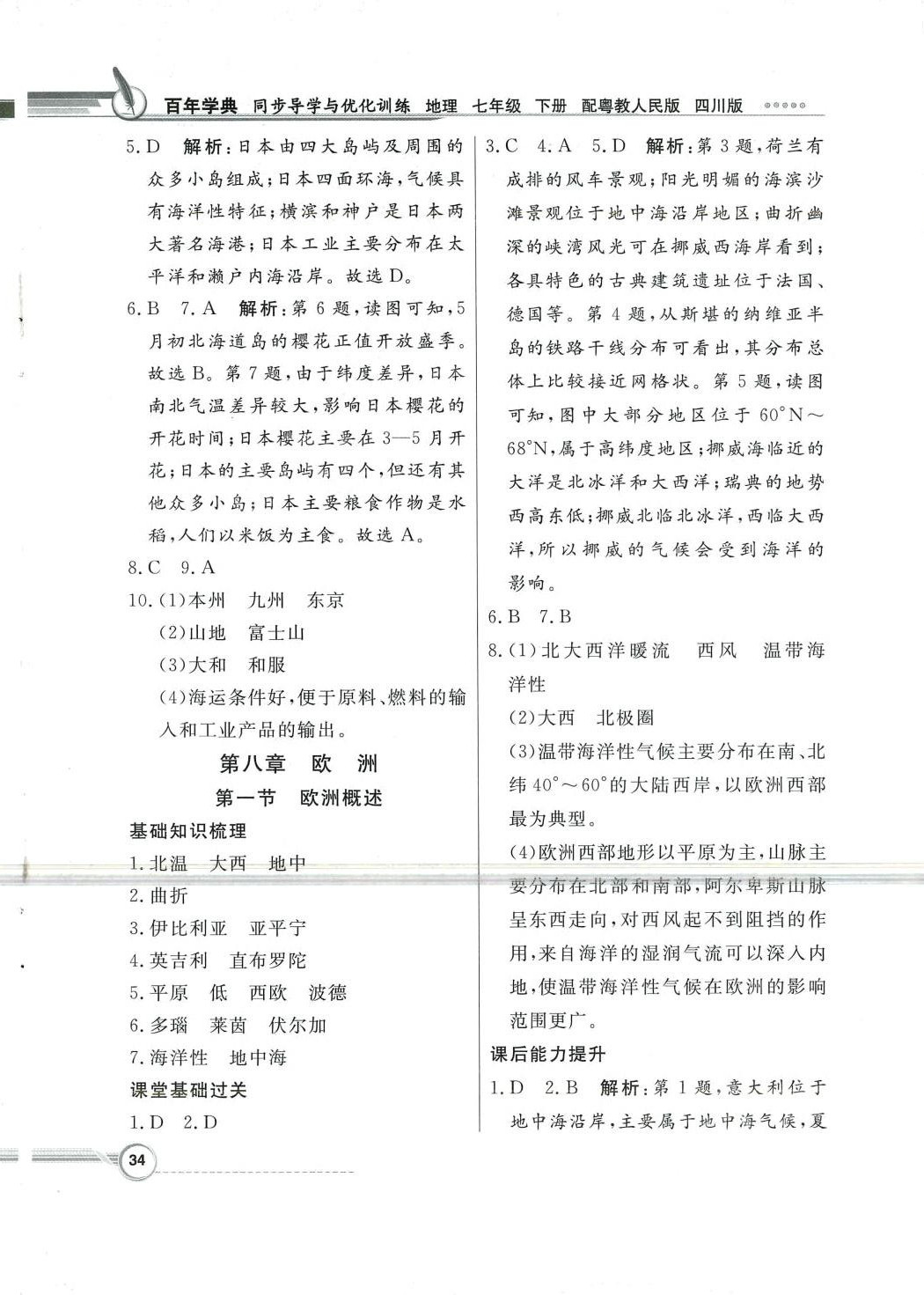 注:目前有些书本章节名称可能整理的还不是很完善,但都是按照顺序排列的,请同学们按照顺序仔细查找。练习册 2024年同步导学与优化训练七年级地理下册粤人版四川专版 答案主要是用来给同学们做完题方便对答案用的,请勿直接抄袭。