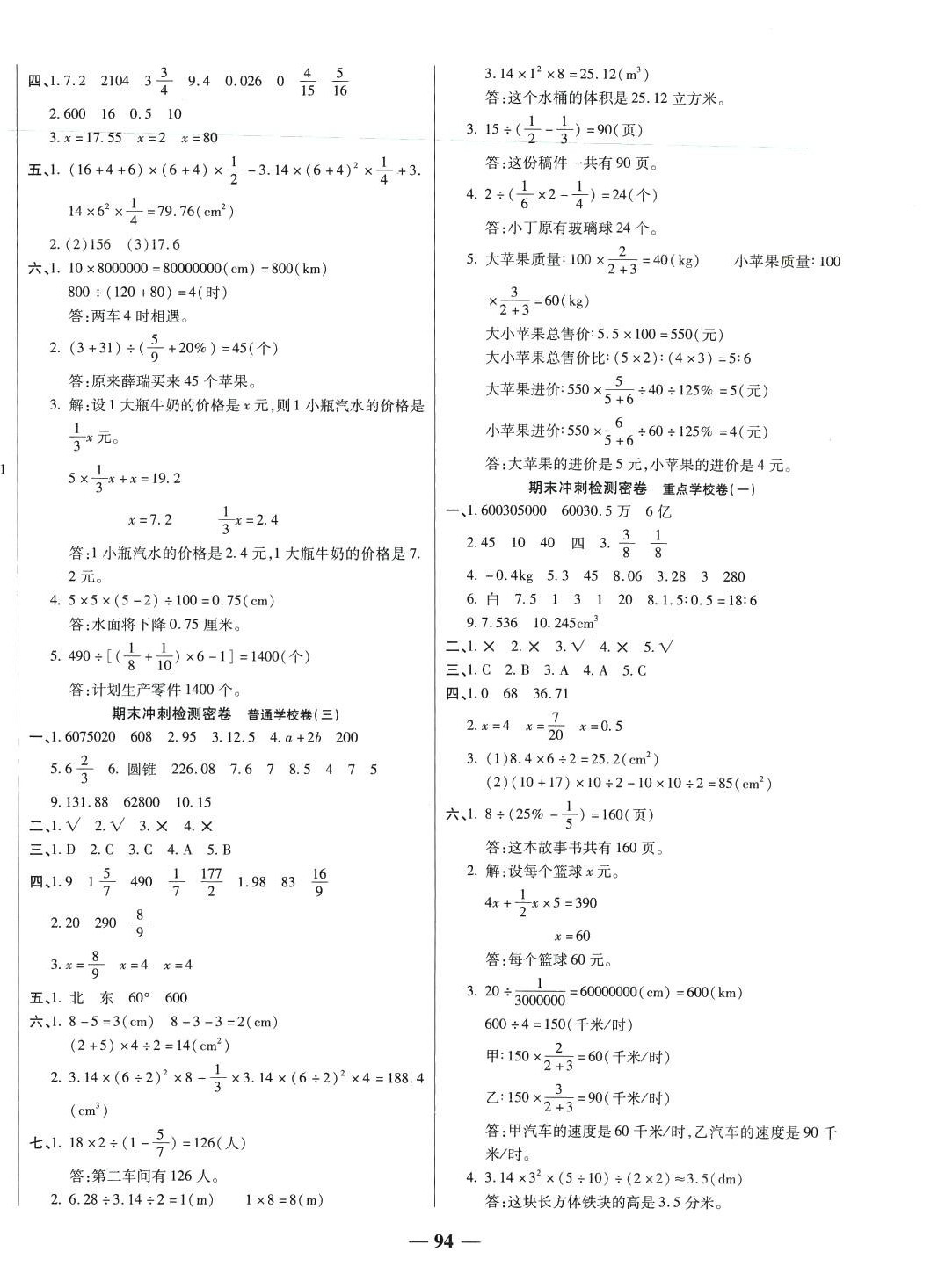2024年一卷搞定冲刺100分六年级数学下册北师大版