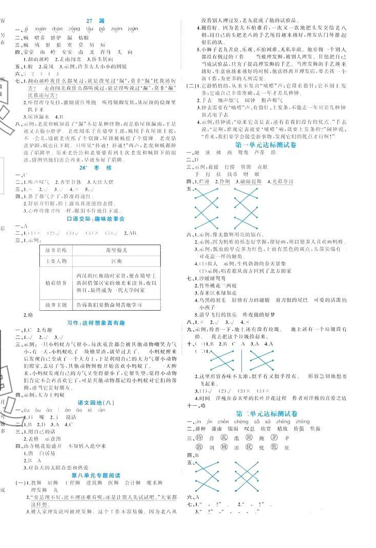 注:目前有些书本章节名称可能整理的还不是很完善,但都是按照顺序排列的,请同学们按照顺序仔细查找。练习册 2024年黄冈新课堂三年级语文下册人教版 答案主要是用来给同学们做完题方便对答案用的,请勿直接抄袭。