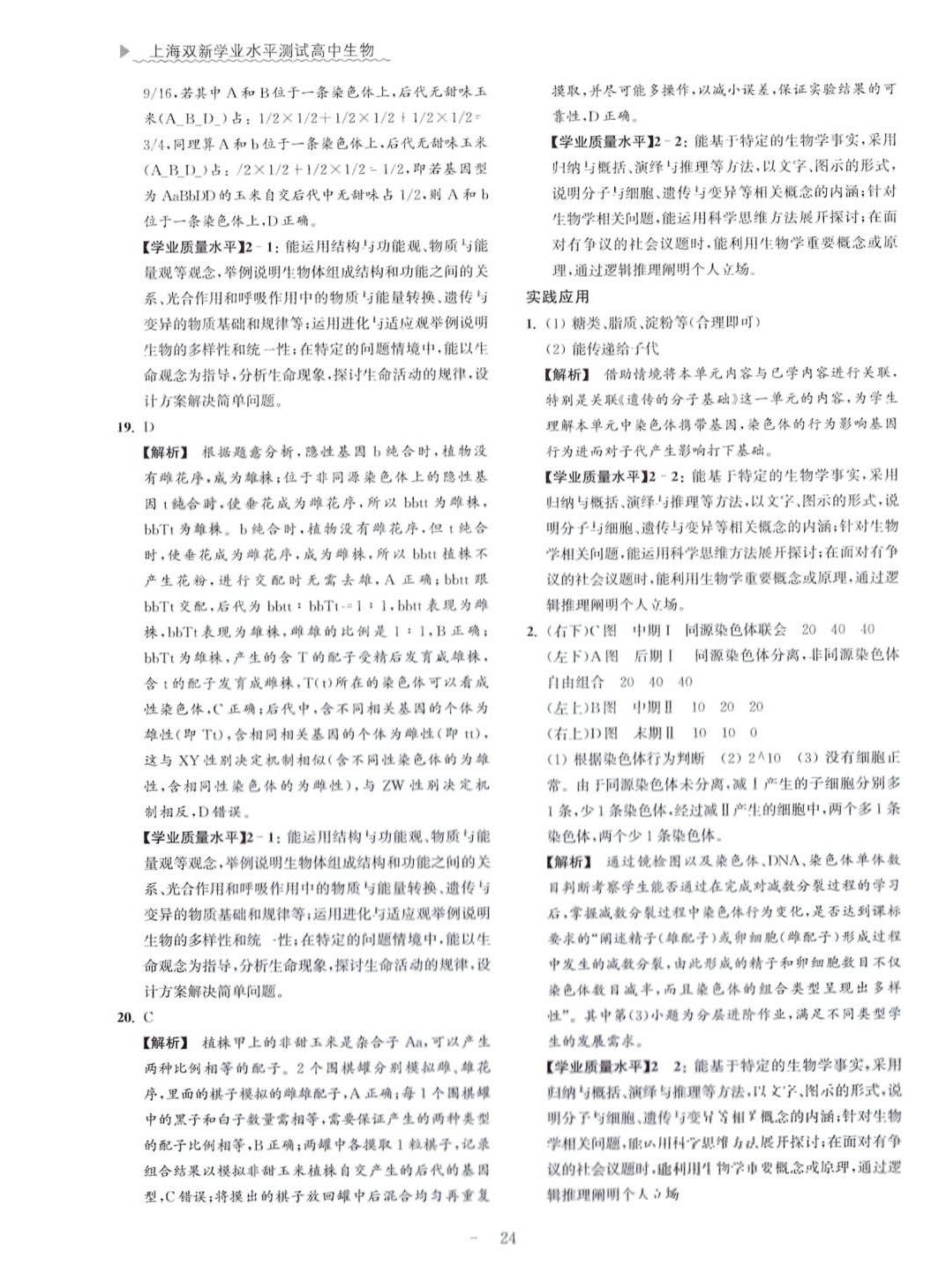 注:目前有些书本章节名称可能整理的还不是很完善,但都是按照顺序排列的,请同学们按照顺序仔细查找。练习册 2024年上海双新学业水平测试高中生物沪教版 答案主要是用来给同学们做完题方便对答案用的,请勿直接抄袭。