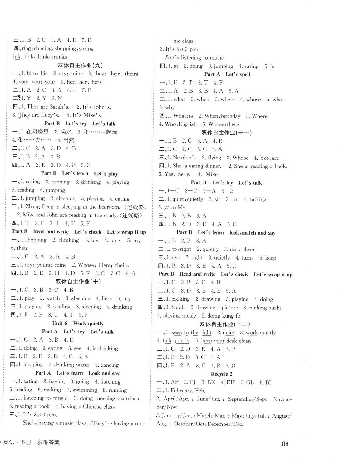 注:目前有些书本章节名称可能整理的还不是很完善,但都是按照顺序排列的,请同学们按照顺序仔细查找。练习册 2024年英才小状元五年级英语下册人教版 答案主要是用来给同学们做完题方便对答案用的,请勿直接抄袭。