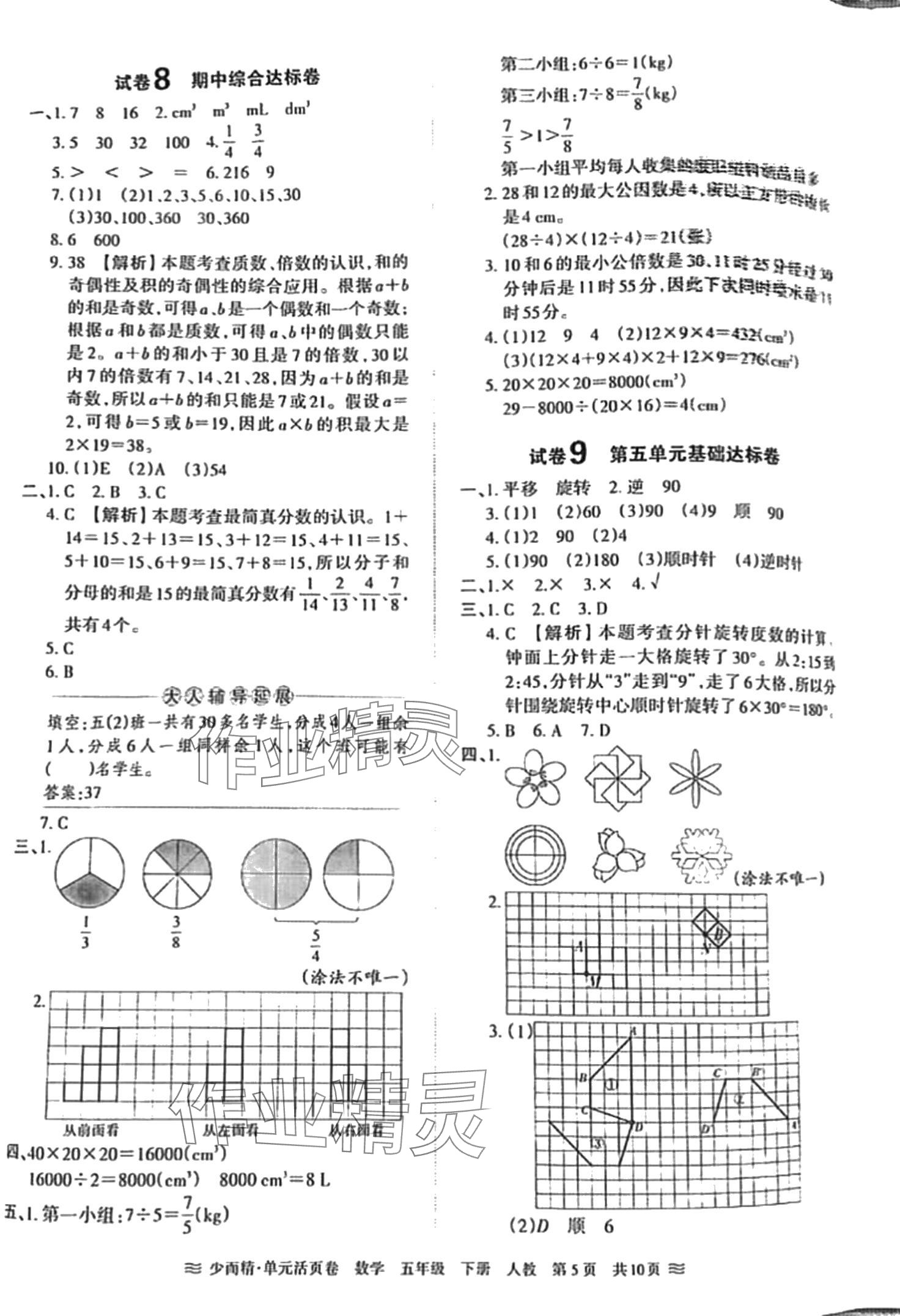 注:目前有些书本章节名称可能整理的还不是很完善,但都是按照顺序排列的,请同学们按照顺序仔细查找。练习册 2024年王朝霞单元活页卷五年级数学下册人教版 答案主要是用来给同学们做完题方便对答案用的,请勿直接抄袭。