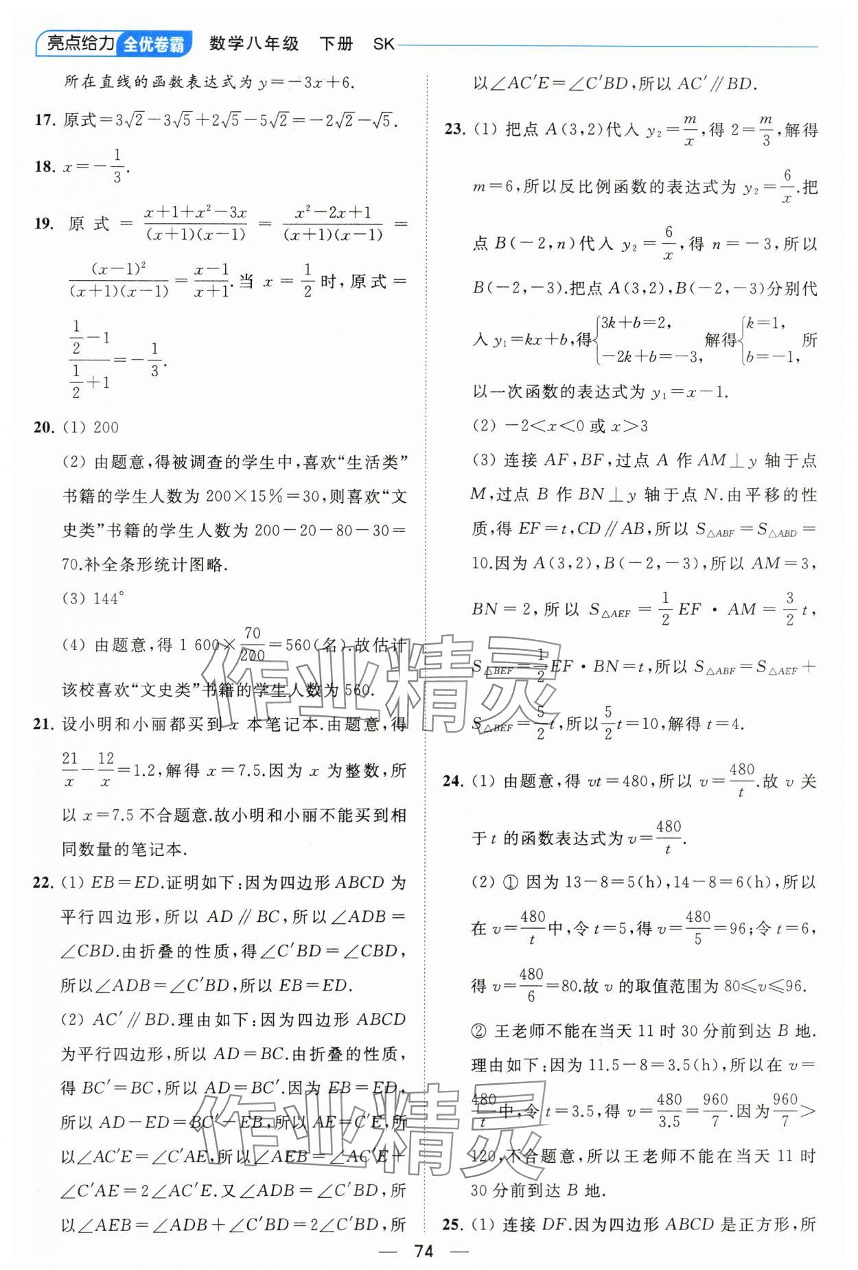 2024年亮点给力全优卷霸八年级数学下册苏科版