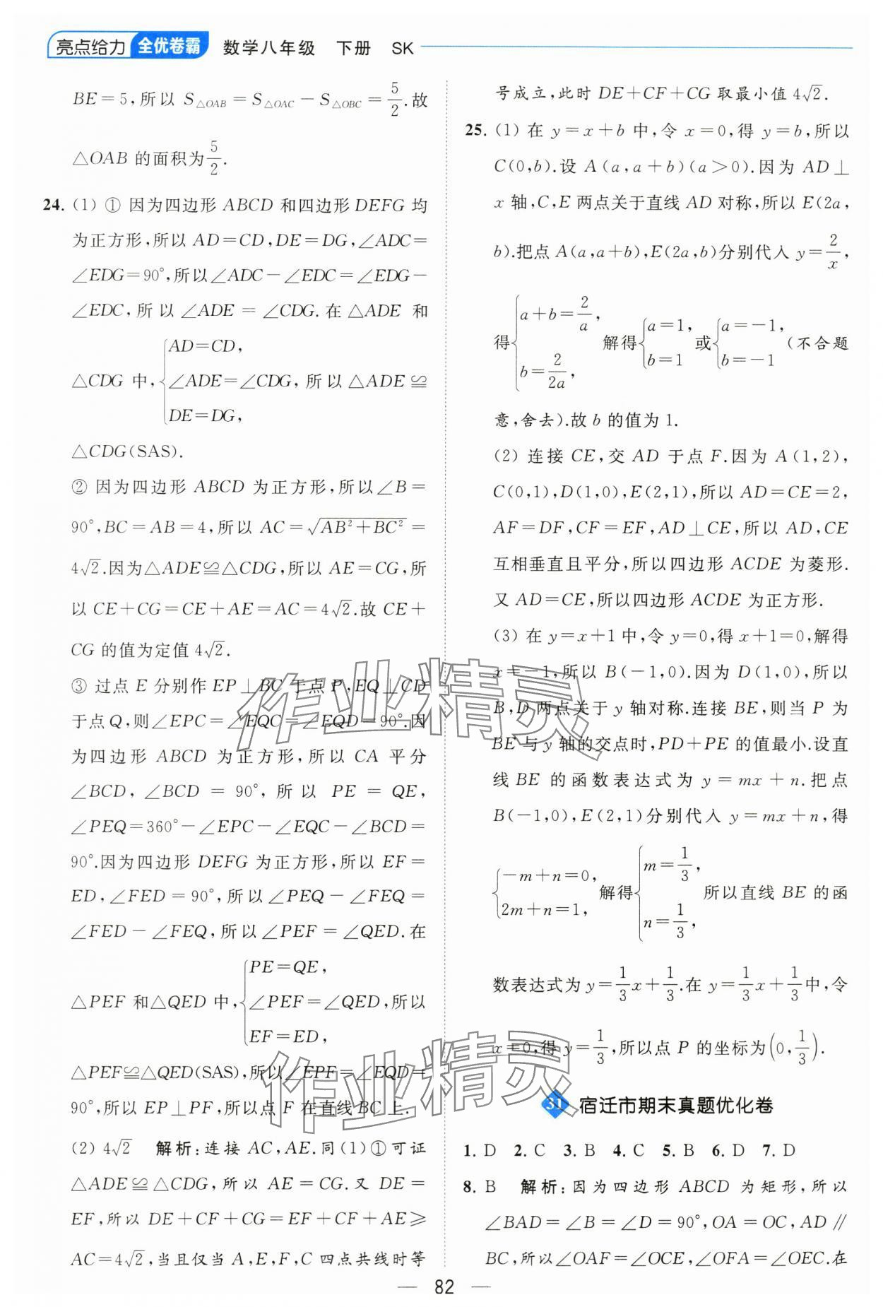 2024年亮点给力全优卷霸八年级数学下册苏科版