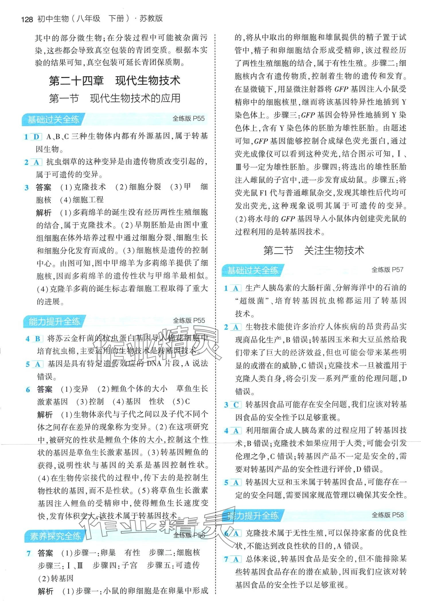 注:目前有些书本章节名称可能整理的还不是很完善,但都是按照顺序排列的,请同学们按照顺序仔细查找。练习册 2024年5年中考3年模拟八年级生物下册苏教版 答案主要是用来给同学们做完题方便对答案用的,请勿直接抄袭。