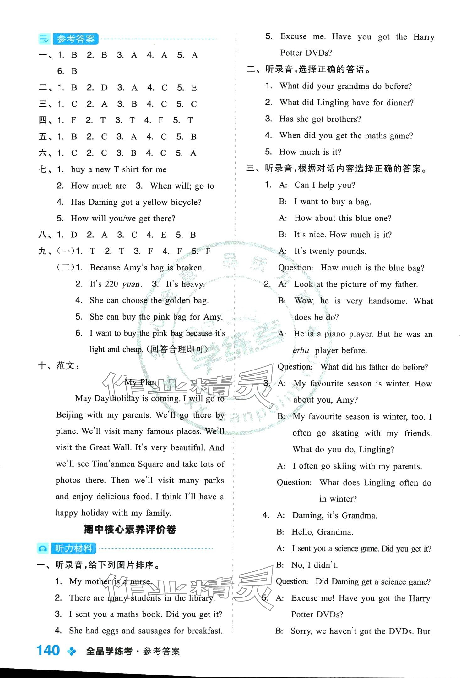 注:目前有些书本章节名称可能整理的还不是很完善,但都是按照顺序排列的,请同学们按照顺序仔细查找。练习册 2024年全品学练考五年级英语下册外研版一年级起 答案主要是用来给同学们做完题方便对答案用的,请勿直接抄袭。