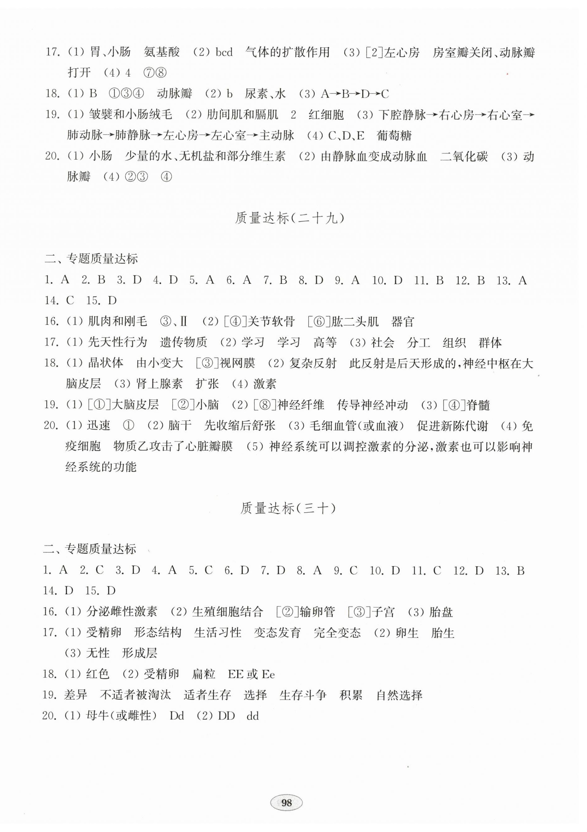 注:目前有些书本章节名称可能整理的还不是很完善,但都是按照顺序排列的,请同学们按照顺序仔细查找。练习册 2024年初中生物学单元质量达标八年级下册自测题人教版 答案主要是用来给同学们做完题方便对答案用的,请勿直接抄袭。