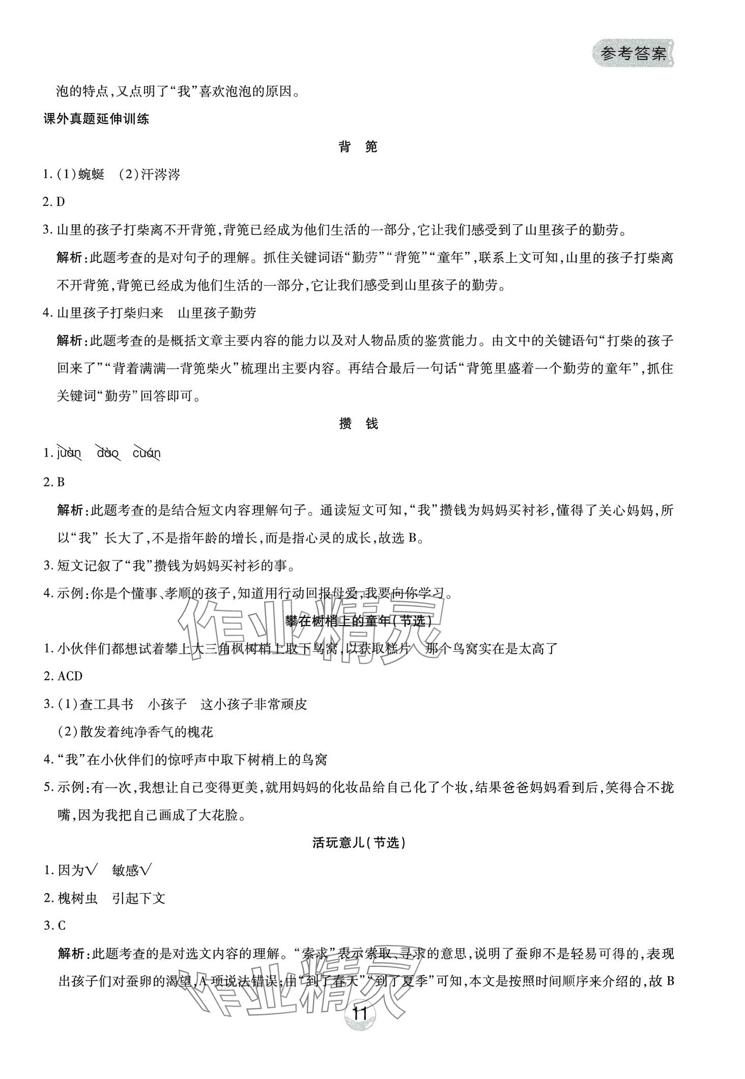 注:目前有些书本章节名称可能整理的还不是很完善,但都是按照顺序排列的,请同学们按照顺序仔细查找。练习册 2024年小能手真题阅读三年级语文下册人教版 答案主要是用来给同学们做完题方便对答案用的,请勿直接抄袭。