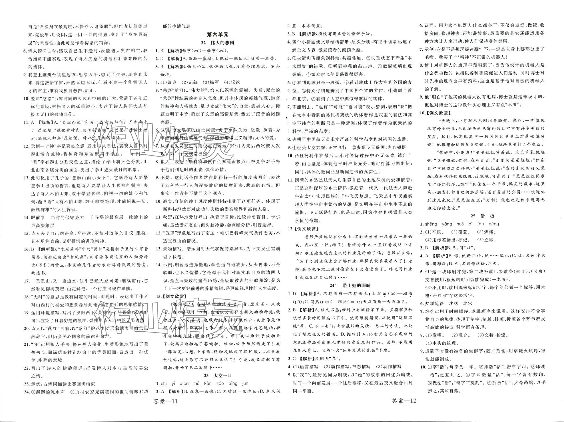注:目前有些书本章节名称可能整理的还不是很完善,但都是按照顺序排列的,请同学们按照顺序仔细查找。练习册 2024年一线调研学业测评七年级语文下册人教版 答案主要是用来给同学们做完题方便对答案用的,请勿直接抄袭。