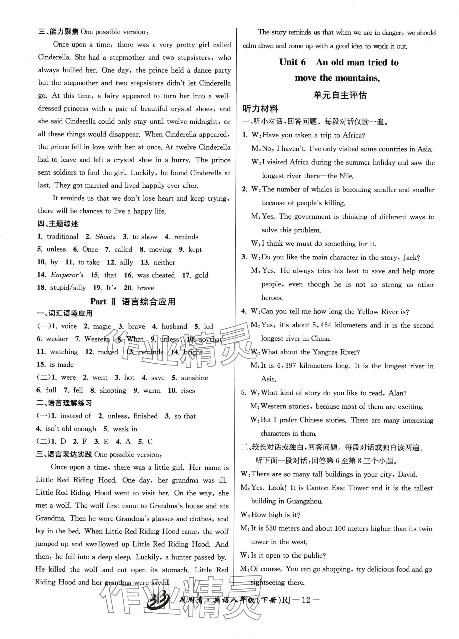 注:目前有些书本章节名称可能整理的还不是很完善,但都是按照顺序排列的,请同学们按照顺序仔细查找。练习册 2024年周周清检测八年级英语下册人教版 答案主要是用来给同学们做完题方便对答案用的,请勿直接抄袭。