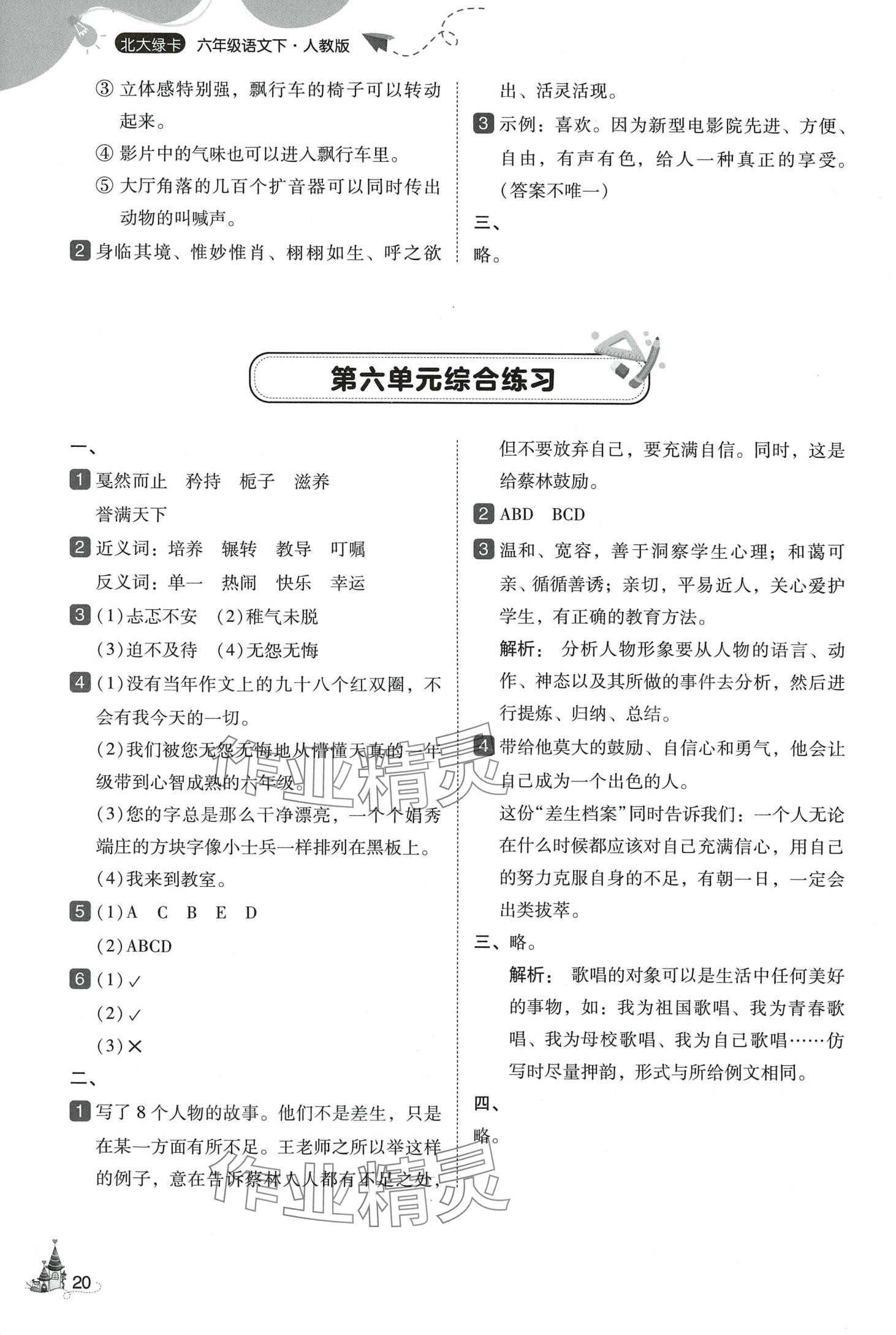 注:目前有些书本章节名称可能整理的还不是很完善,但都是按照顺序排列的,请同学们按照顺序仔细查找。练习册 2024年北大绿卡六年级语文下册人教版深圳专版 答案主要是用来给同学们做完题方便对答案用的,请勿直接抄袭。