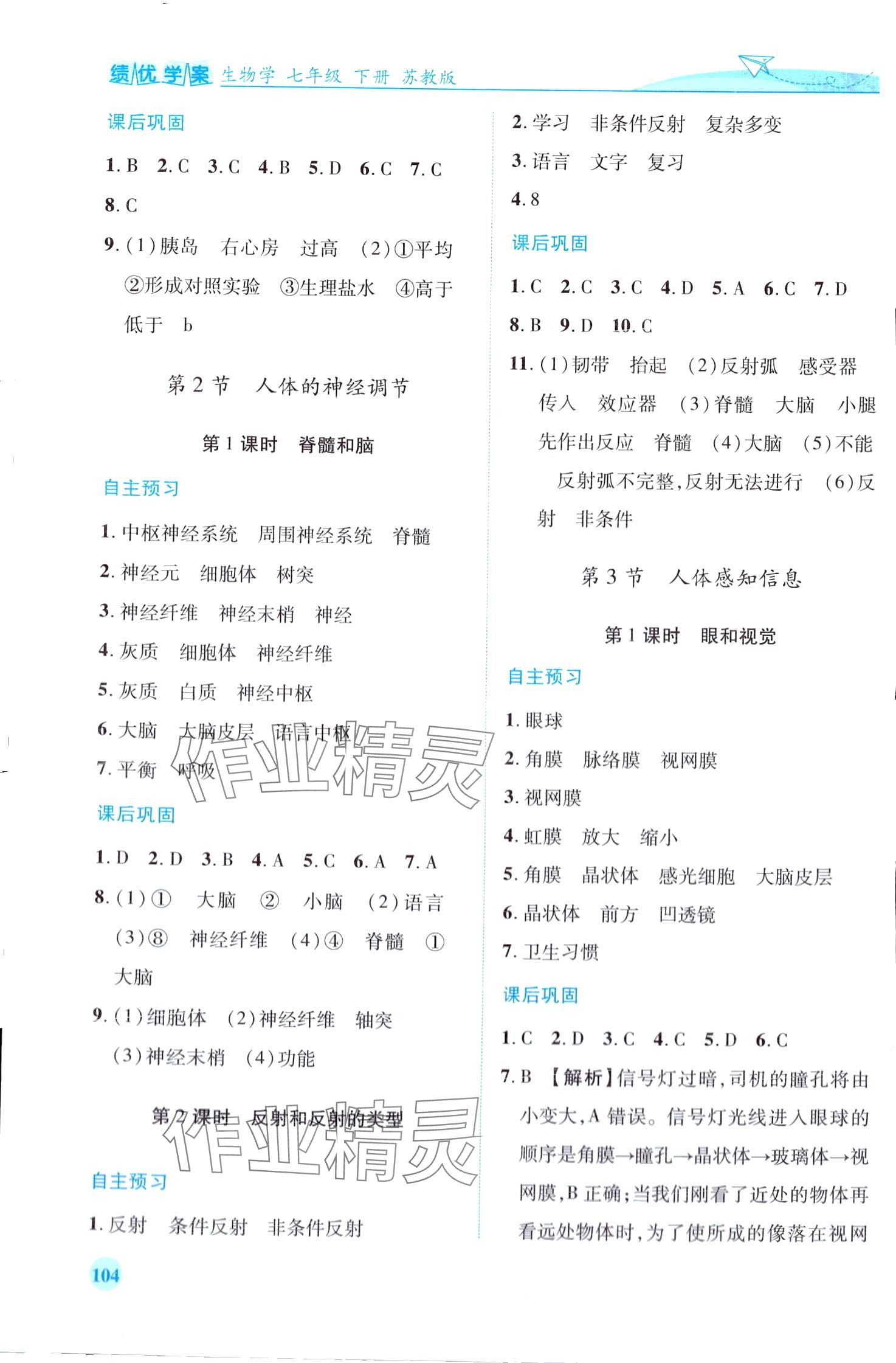 注:目前有些书本章节名称可能整理的还不是很完善,但都是按照顺序排列的,请同学们按照顺序仔细查找。练习册 2024年绩优学案七年级生物下册苏教版 答案主要是用来给同学们做完题方便对答案用的,请勿直接抄袭。