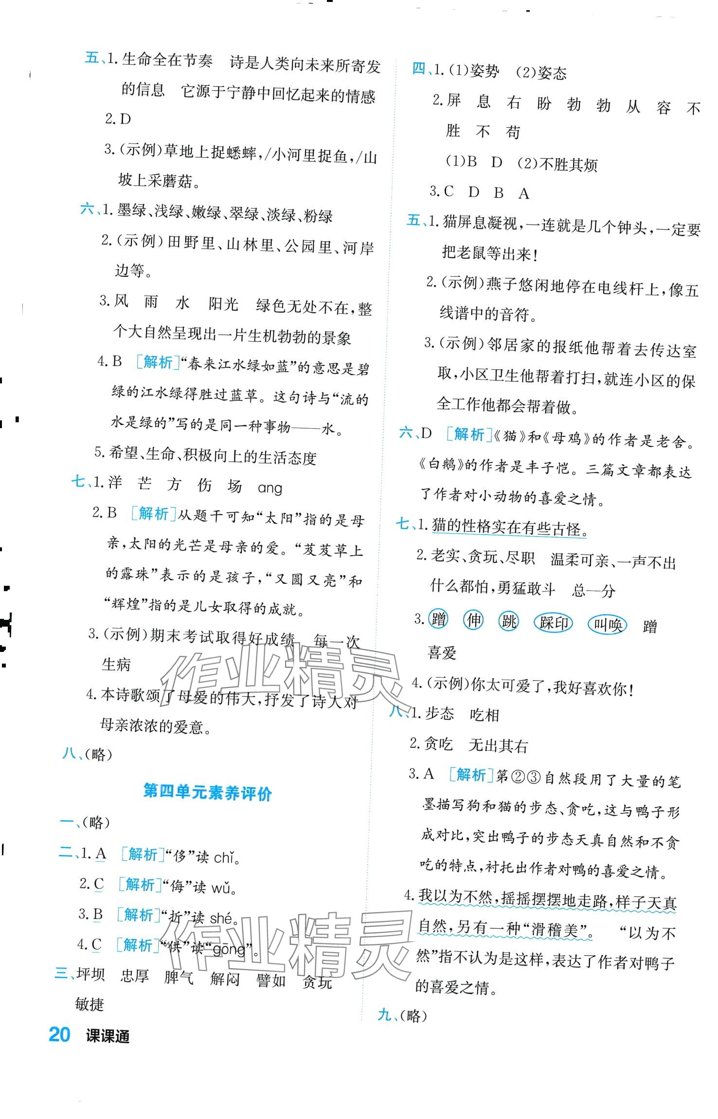 注:目前有些书本章节名称可能整理的还不是很完善,但都是按照顺序排列的,请同学们按照顺序仔细查找。练习册 2024年课课通同步随堂检测四年级语文下册人教版 答案主要是用来给同学们做完题方便对答案用的,请勿直接抄袭。