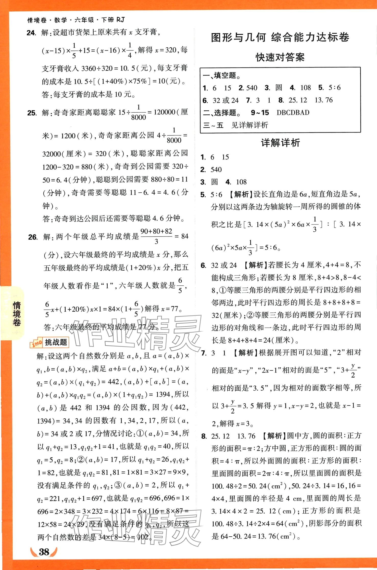 注:目前有些书本章节名称可能整理的还不是很完善,但都是按照顺序排列的,请同学们按照顺序仔细查找。练习册 2024年小白鸥情境卷六年级数学下册人教版 答案主要是用来给同学们做完题方便对答案用的,请勿直接抄袭。